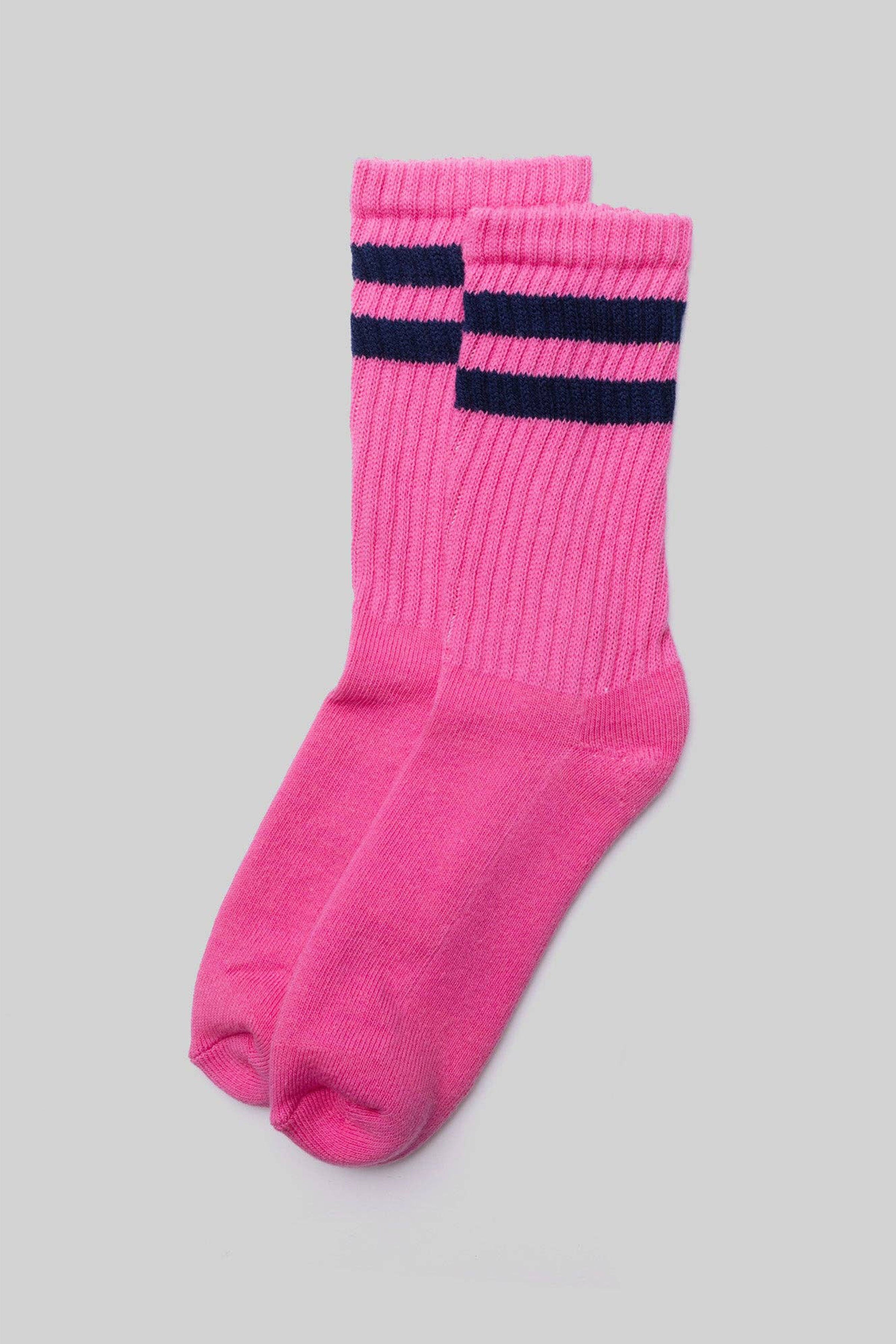 A welcome variation of the daily Solids, the Retro Double Stripe uses American Trench's trusted and proven Retro body in a new color palette and adds a personal two-stripe. These scream "pro." Knit from American-grown ringspun cotton, built with enough cushion to make a difference and still, they avoid being bulky.