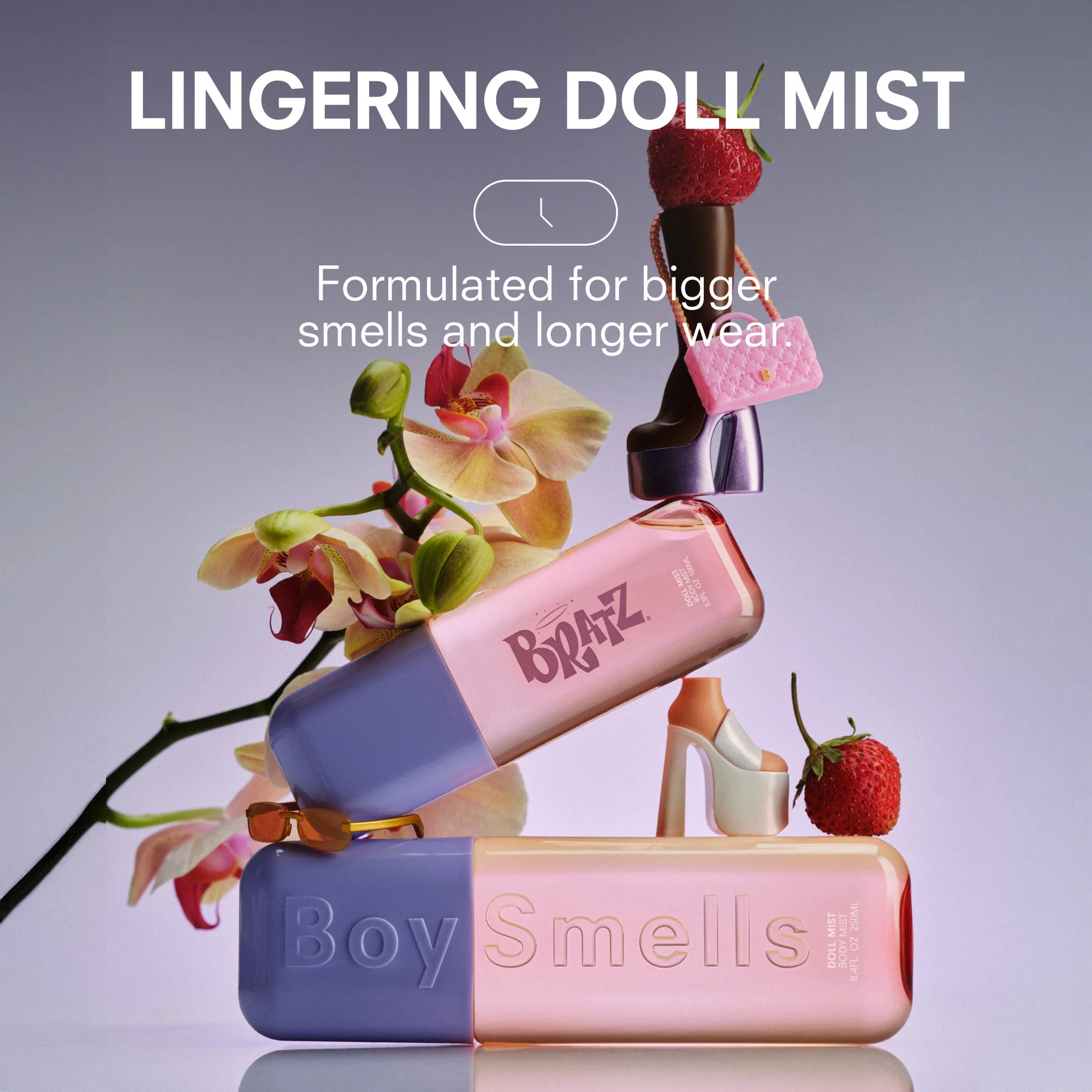 Introducing Boy Smell's newest collab with the iconic BRATZ fashion dolls. Smell like a freshly opened doll—clean, glammed and ready to go with fresh orchid notes, blushing strawberry and a powdery plastique accord that’s giving “get on my level.” Spritz it on its own or as a finishing scent polisher.