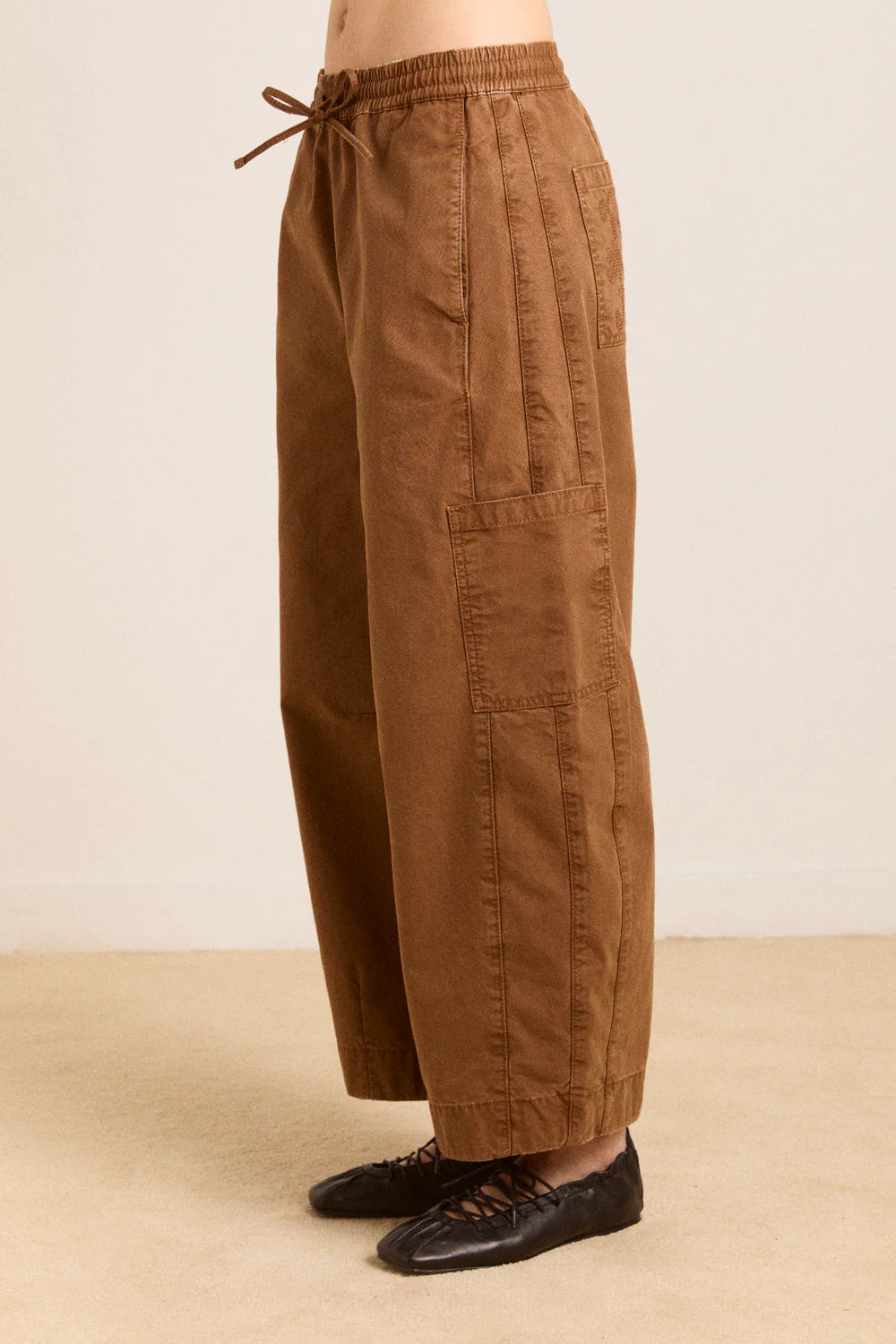 Damson Madder's hero Felix Trousers have been reimagined in a new caramel colorway. With their signature loose barrel fit, elasticated waist, side seaming details and custom DM embroidery on the back pockets, the Felix trousers will be on repeat season after season.