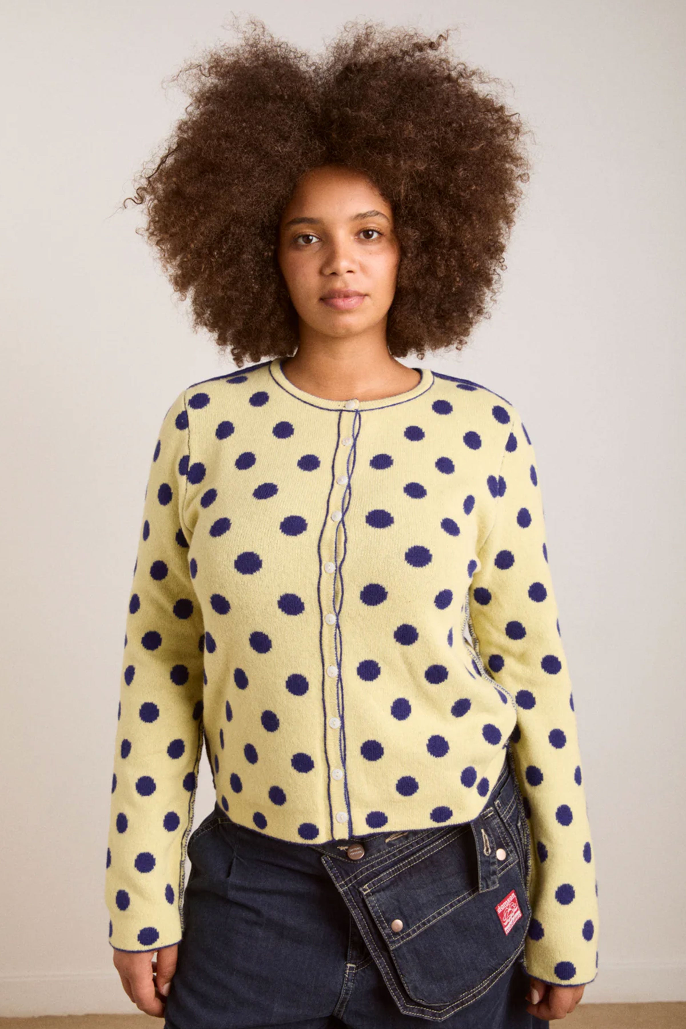 The Tabitha Merino Reversible Cardigan is crafted from 100% RWS Merino Wool and features an all-over spot design that’s made to be worn both ways. With its relaxed fit, crew neck, and classic button-d own front, it’s an easy wardrobe staple. Finished with a subtle metal DM branding tab for a refined touch.
