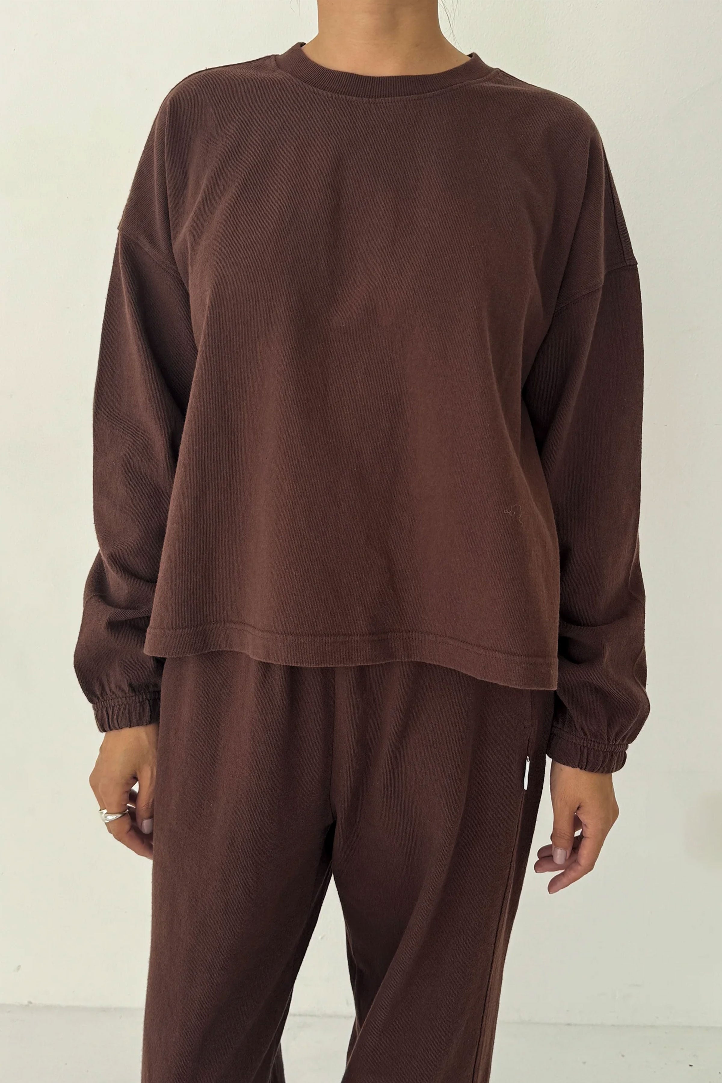A relaxed t-shirt made from a heavyweight cotton with a super raw textured - yet still soft and airy. Elastic ruched sleeve opening creates a slight balloon sleeve effect and adds a slight feminine detail. Wear the sleeve full length or scrunch it up for a more relaxed, slouchy feel. Pairs perfectly with the Flared Basketball Shorts.