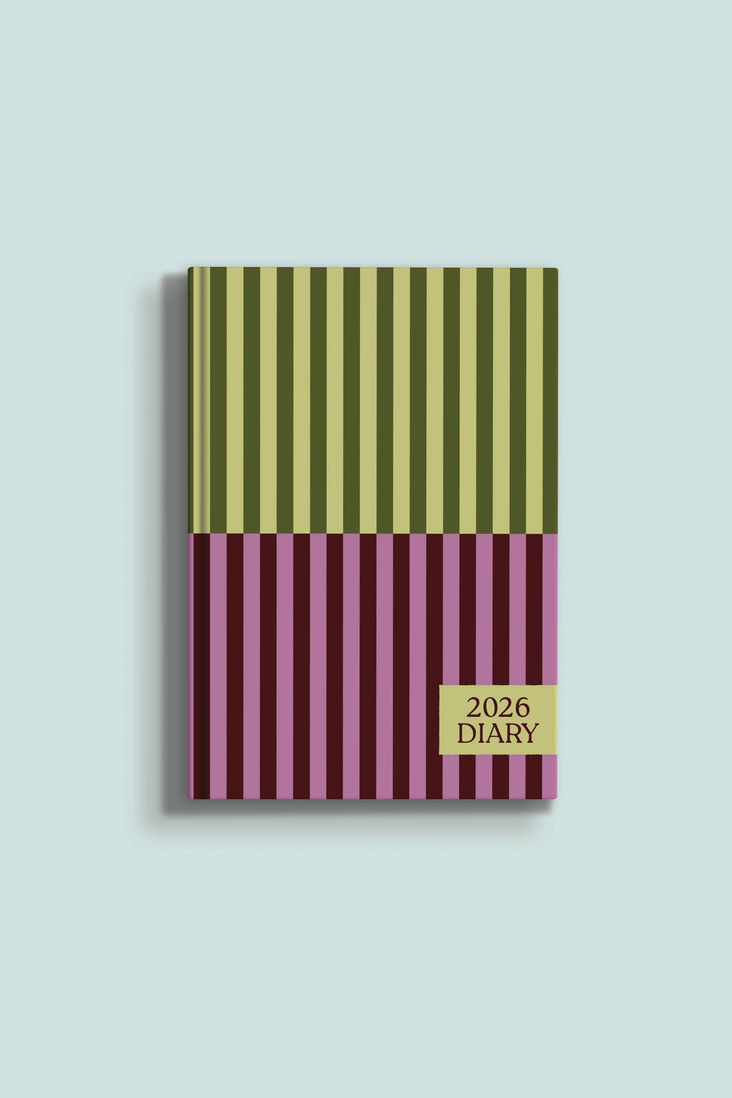 A two-tone stripy cover in punchy pistachio and plum – clean, confident, and slightly unexpected. A diary for lovers of rhythm, balance, and a bit of bold. Compact but generous, it’s a great pick for gifting, planning, or everyday desk use.