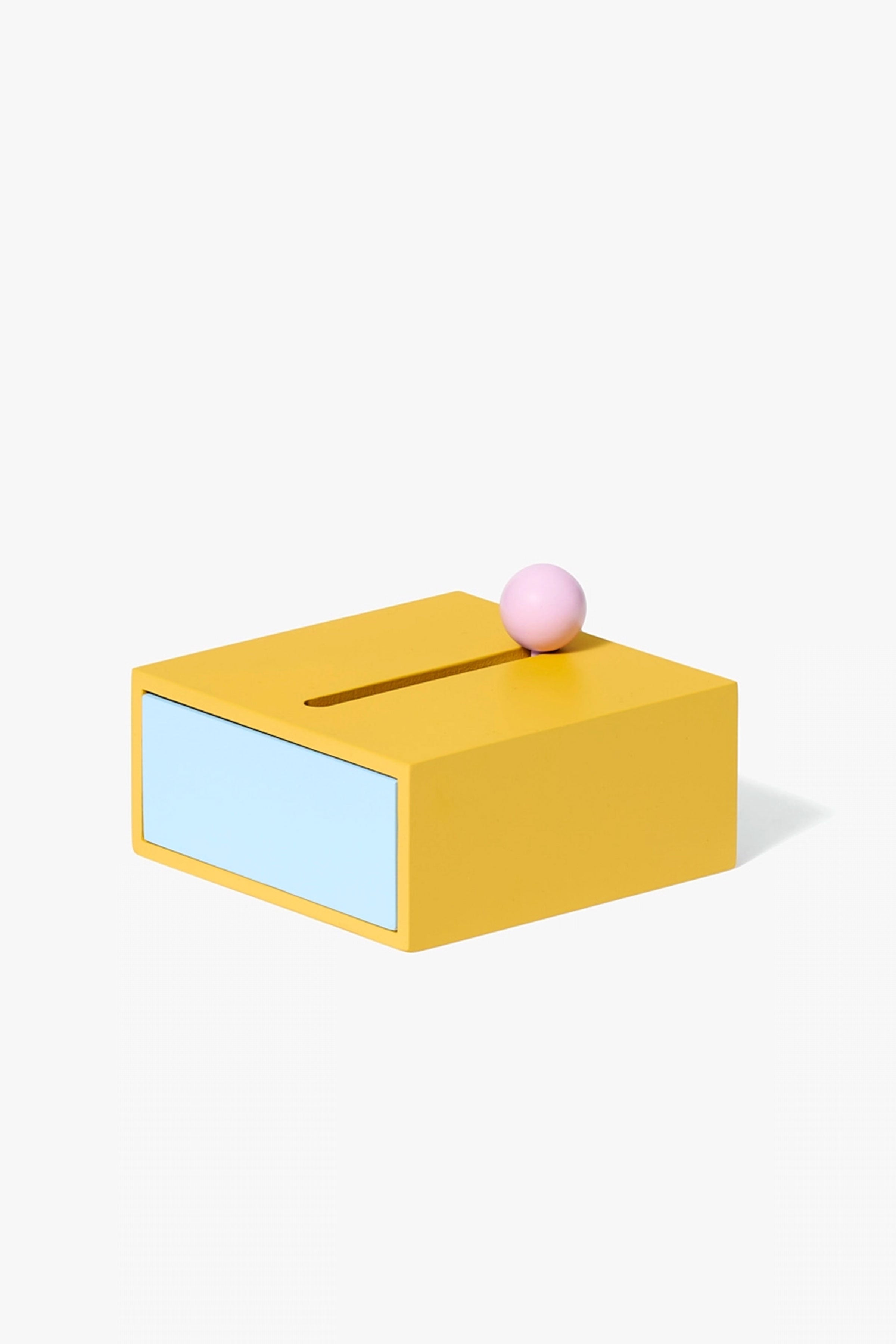 This minimalist and colorful storage box artfully hides away a myriad of things, from loose change to love notes. Insert small items through the slot on top or slide open the drawer with its knob to tuck them away. It's useful in the kitchen, bathroom, or on your desktop—and so aesthetically pleasing, it's a cache you won't want to clear.