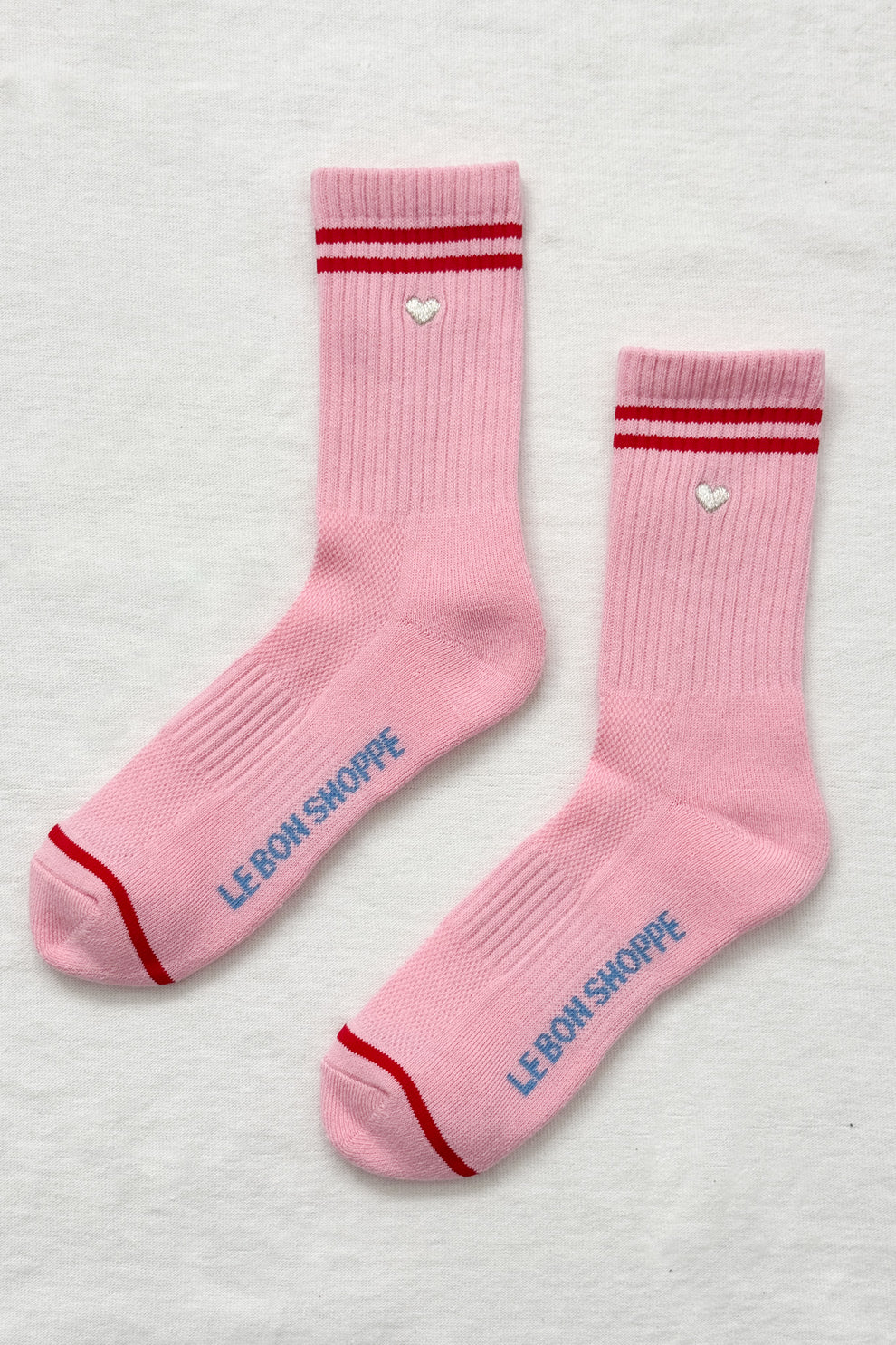 Embroidered Boyfriend Socks (Pink + Heart)