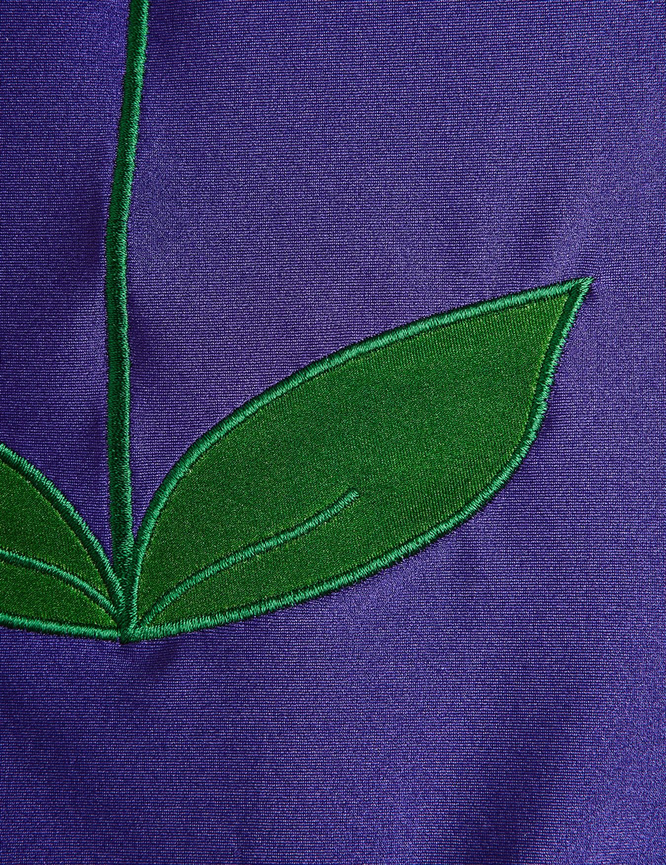Swimsuit made from 83% recycled nylon and 17% elastane. Halterneck with a voluminous petal ruffle collar, back clasp closure, and a flower stem and leaves appliqué at the front.