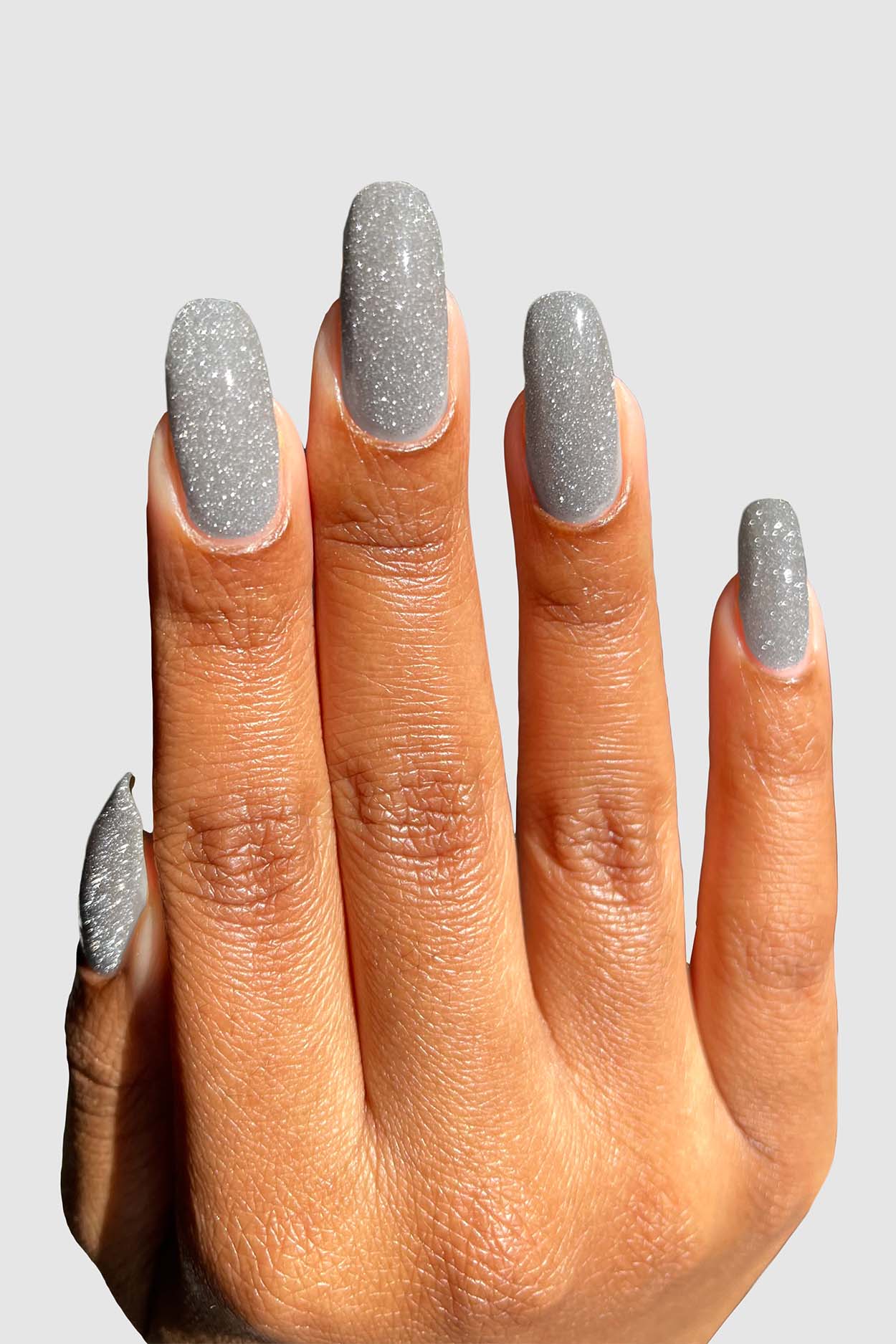 Disco Ball is flash reflective fine silver glitter nail polish in a clear base.
