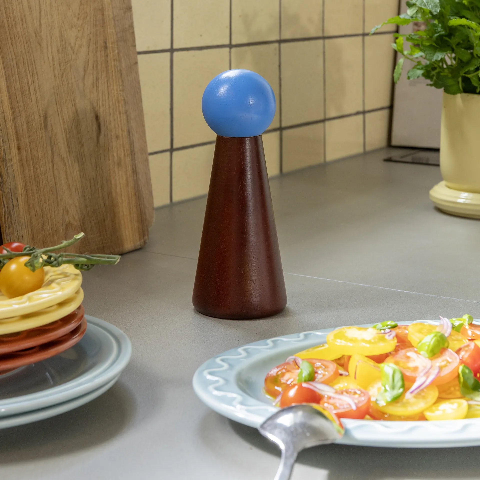 Add playful elegance to your kitchen with the salt & pepper halma mills. Inspired by traditional wooden game pieces, these mills come in four coordinated colors and two sizes. Crafted from FSC-certified rubberwood with a durable ceramic mechanism inside, each mill can be used for either salt or pepper. The colors are applied using a stain that subtly reveals the natural wood grain, then finished with a clear, food-safe lacquer. Create your own charming, vibrant set that’s as fun to use as it is to display.