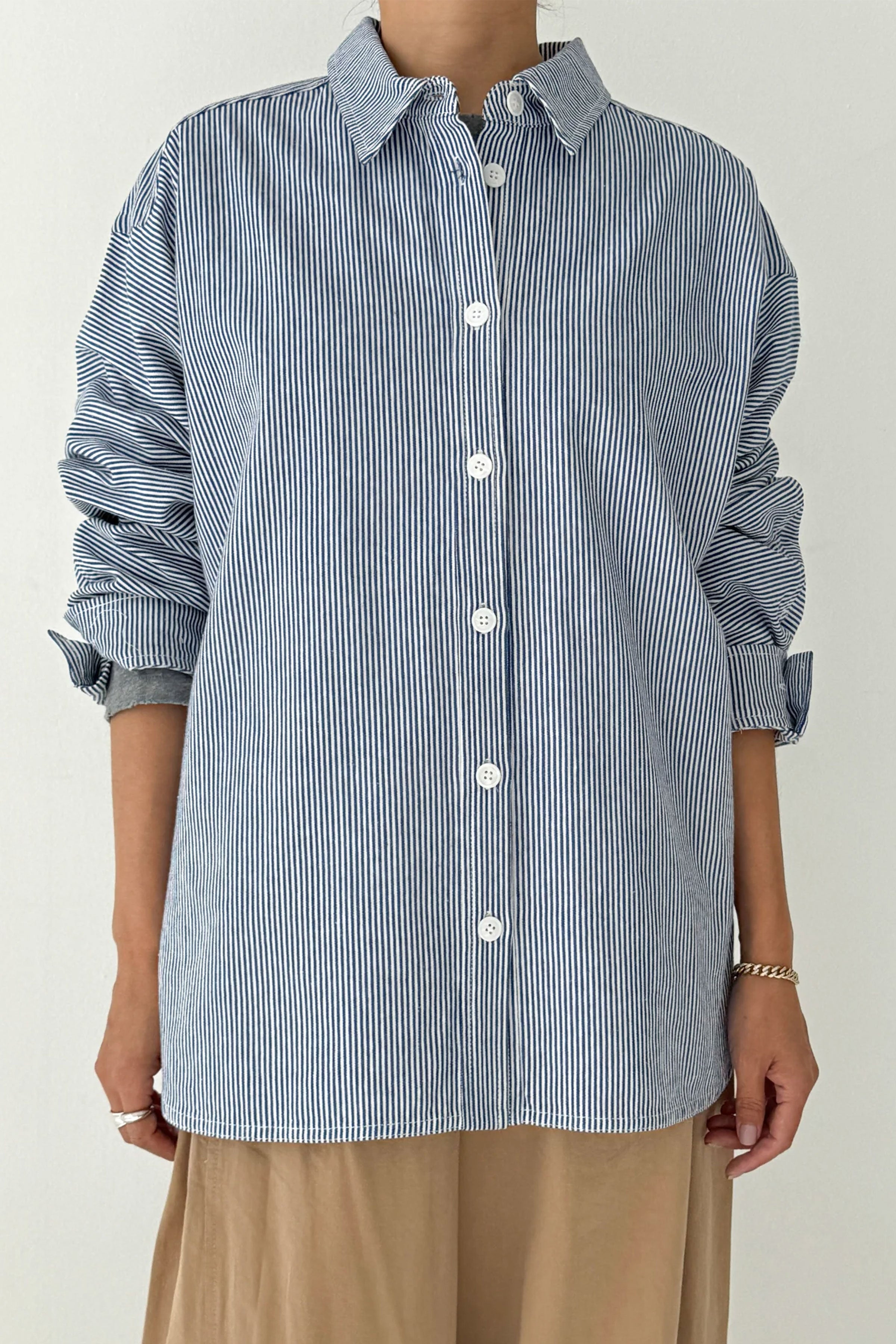 The classic denim shirt, reimagined. It fits like the perfect vintage '90s piece—slightly oversized and relaxed for easy layering, or wear it as a lightweight jacket. Made from 100% heavy cotton denim, it's soft yet durable, ideal for both casual and elevated looks. Featuring functional buttons, contrast stitching, and a classic rounded hem, it's a timeless, versatile wardrobe essential that transcends time.