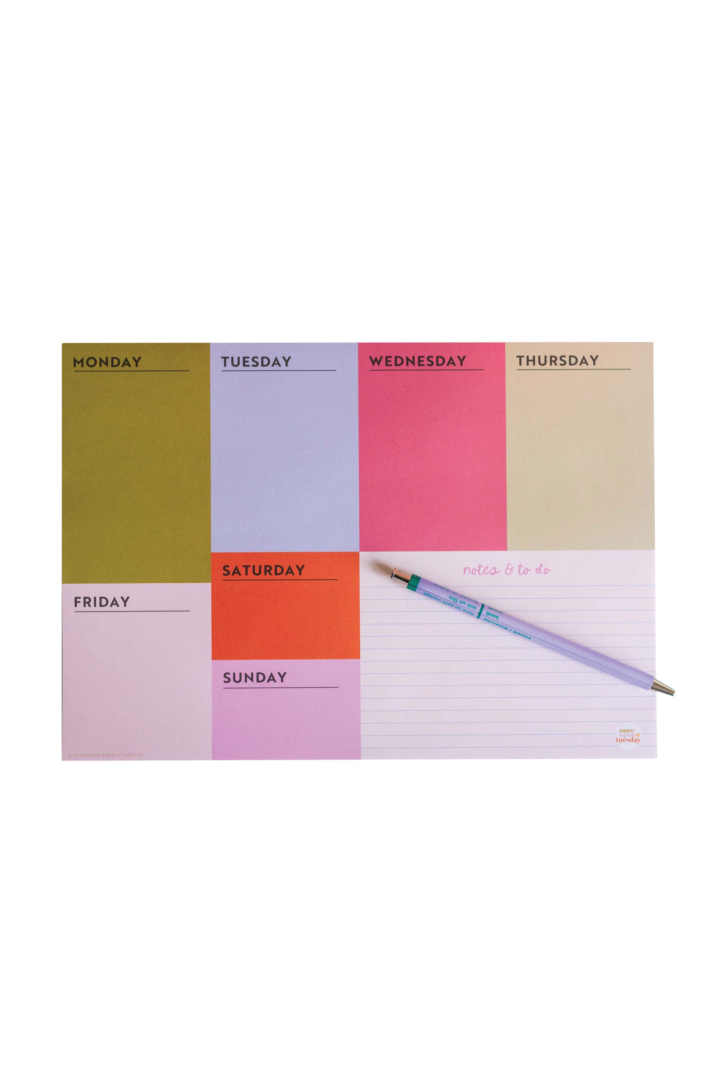 Bold, color block A4 weekly planner pad with 52 tear off pages, with to-do list and notes section. Designed for people who need to level up your productivity by having a clear plan in place - obviously in the most fun and colorful way.