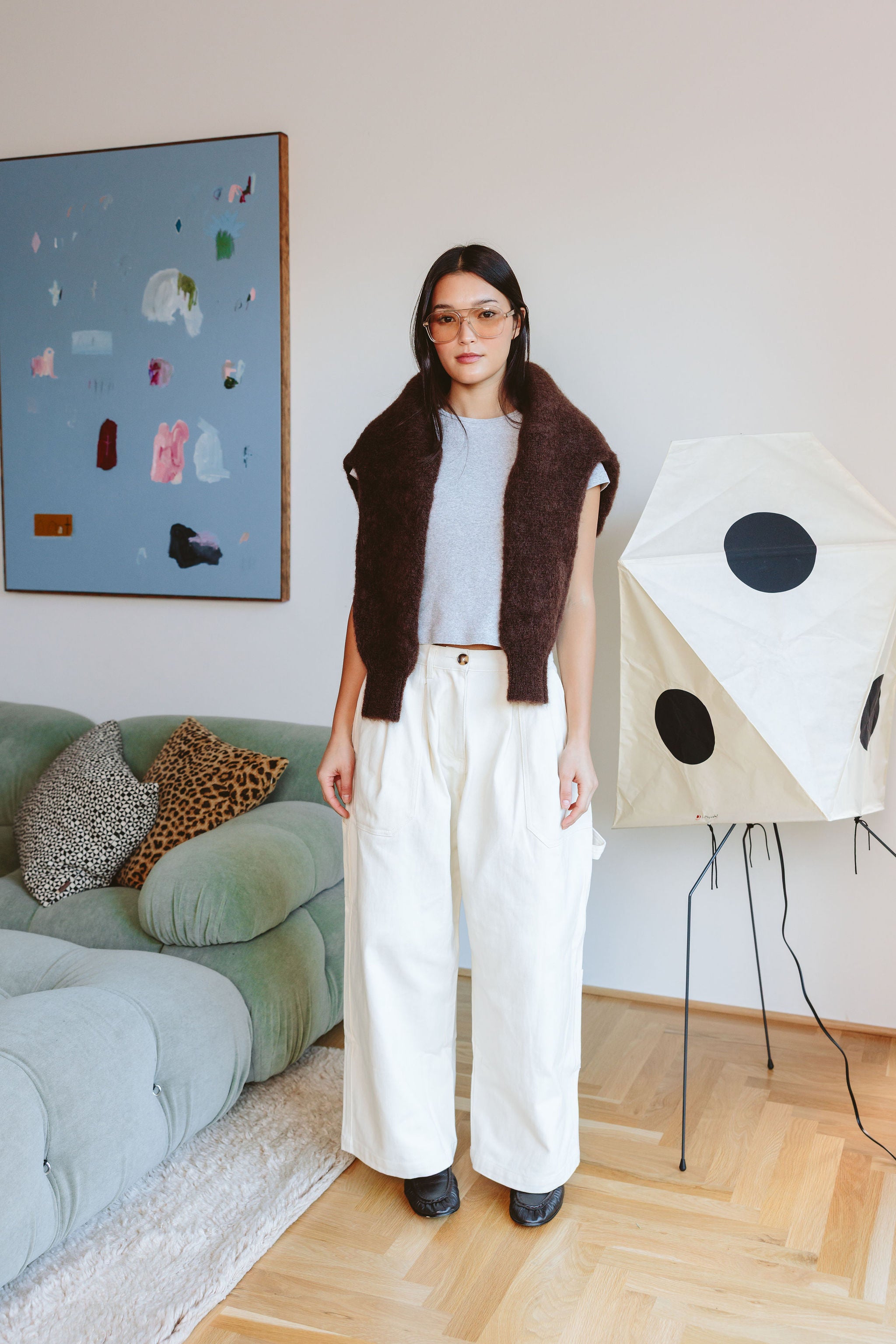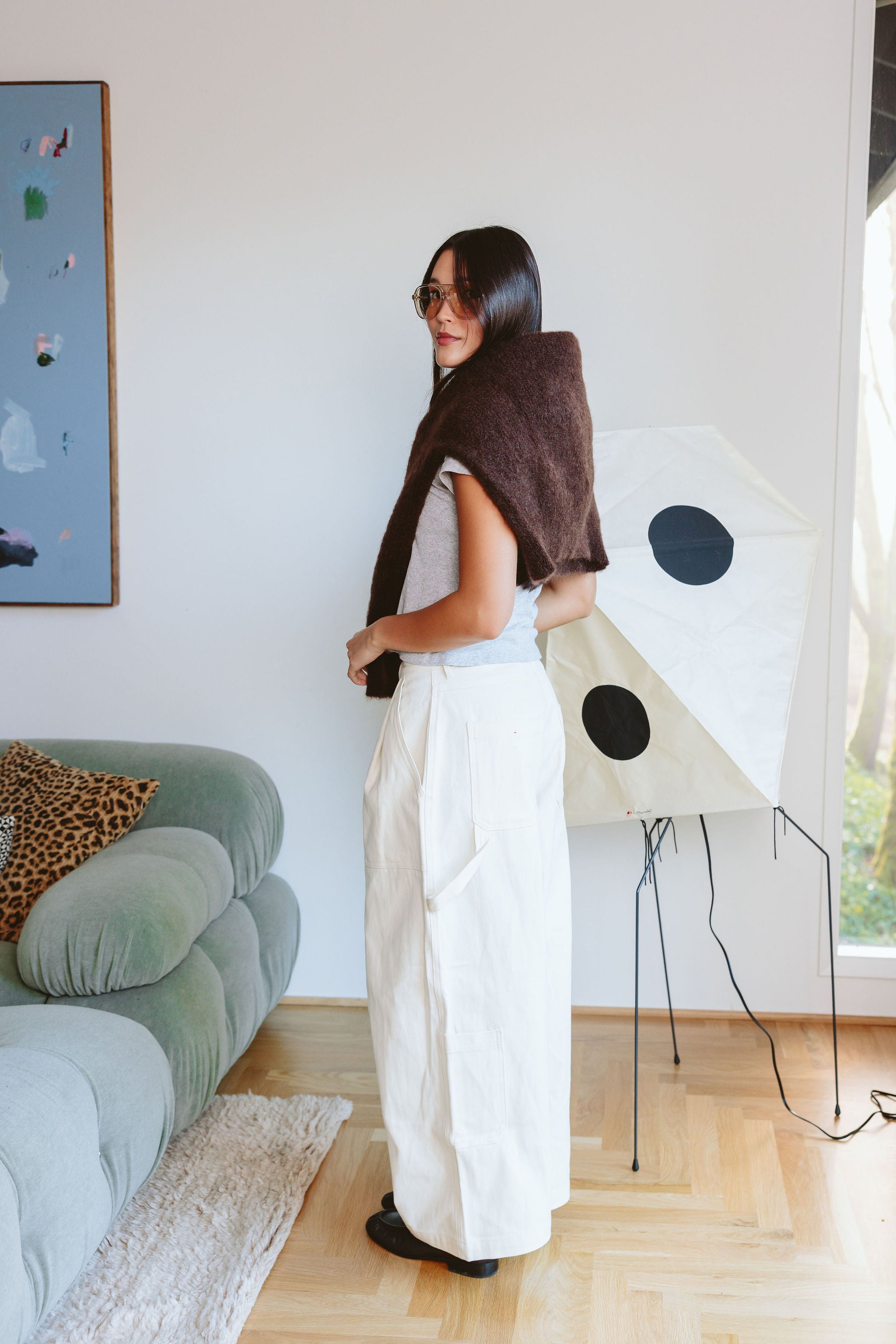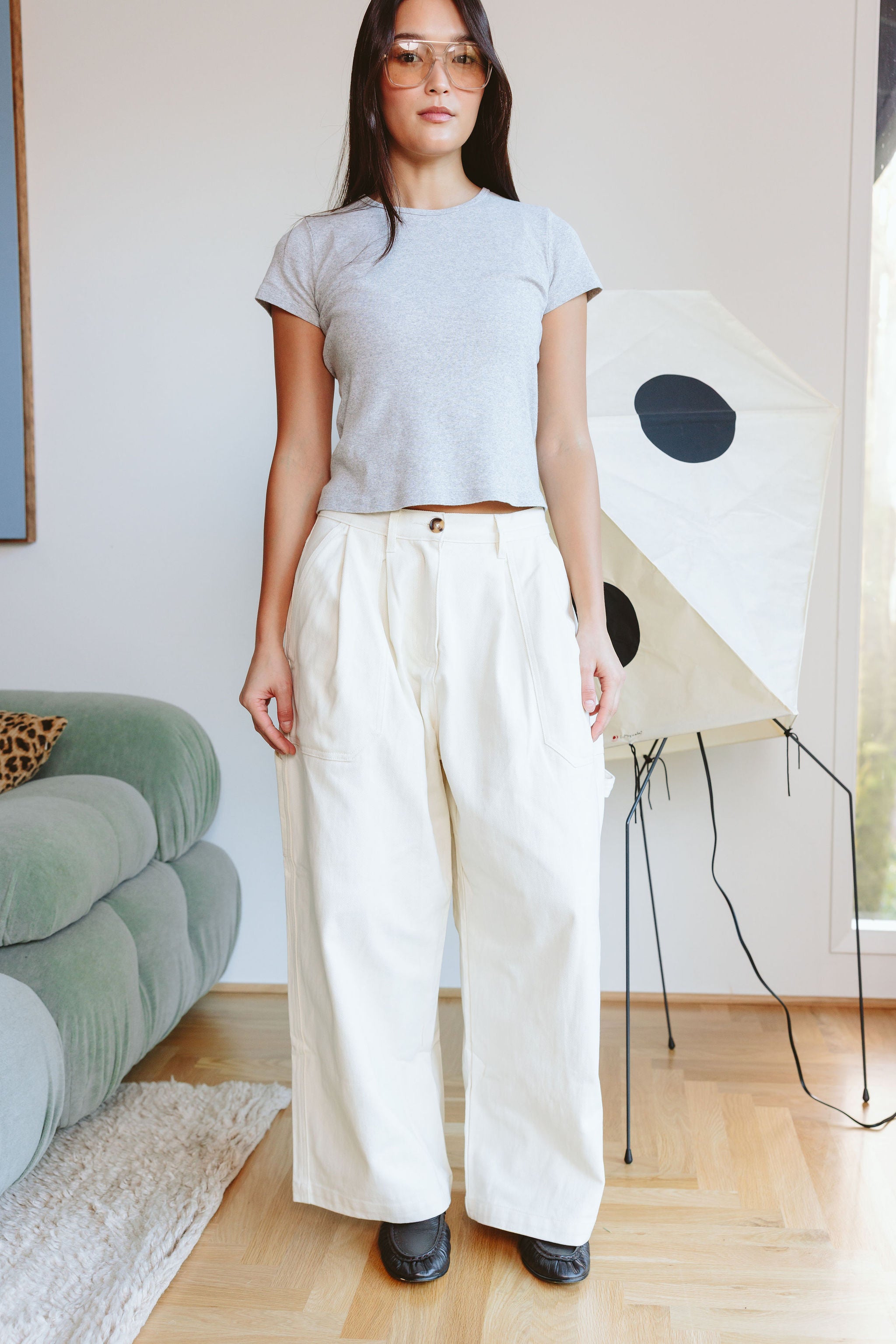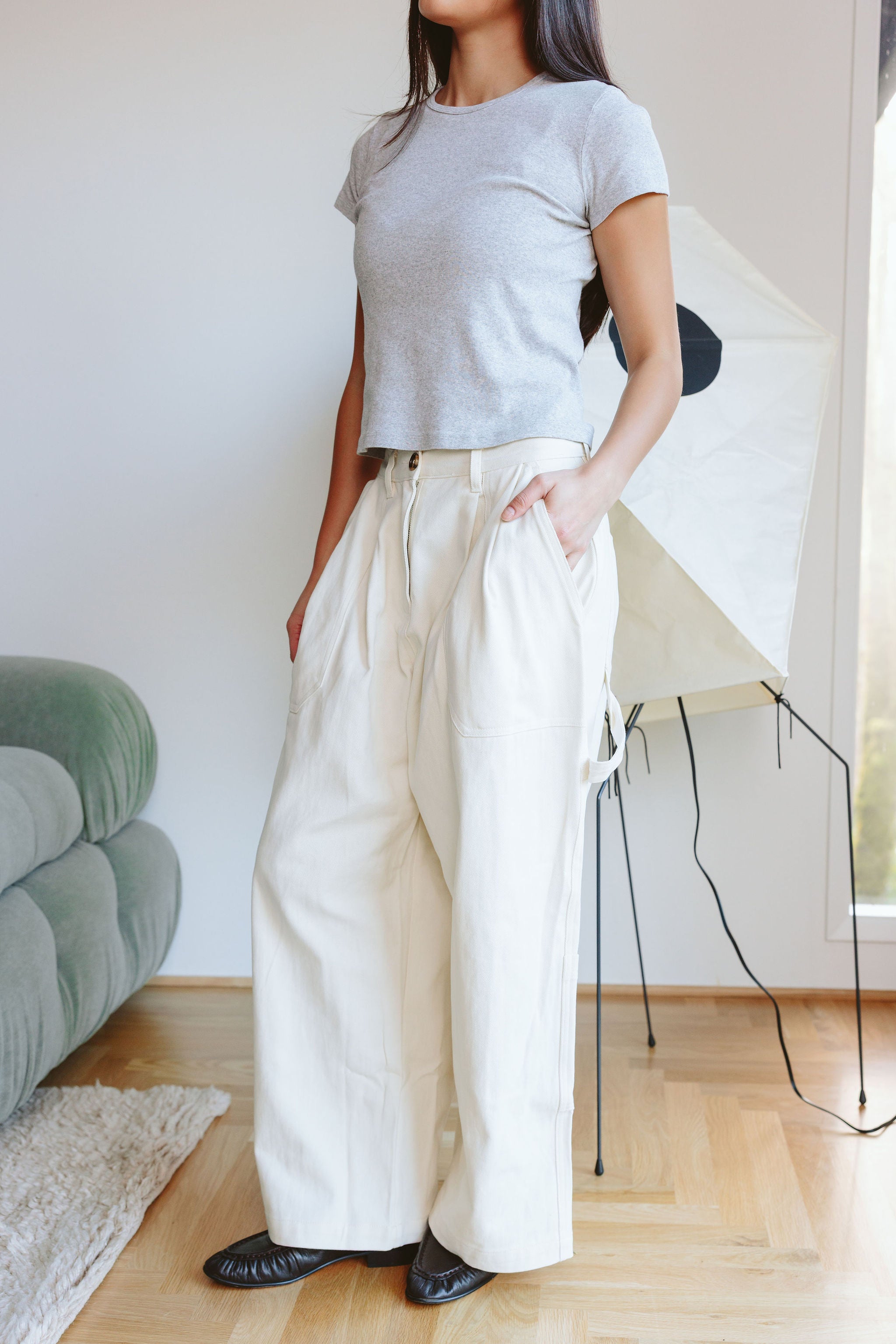 The Workpant is a roomy, workwear-inspired trouser with a wide leg and spacious fit. Designed to be worn high-waisted, with front pleats adding to the voluminous shape. With workwear-inspired pockets and loop detail.