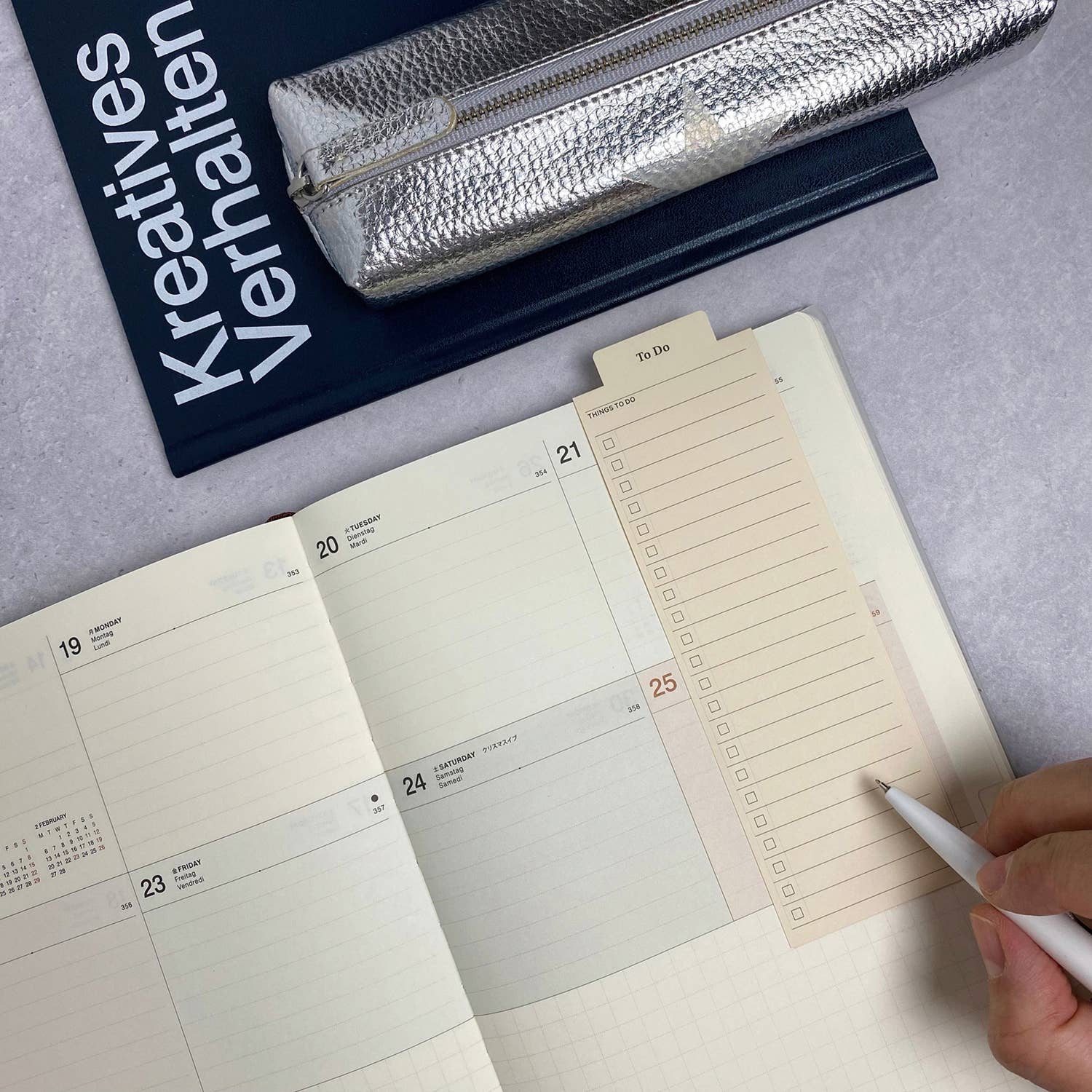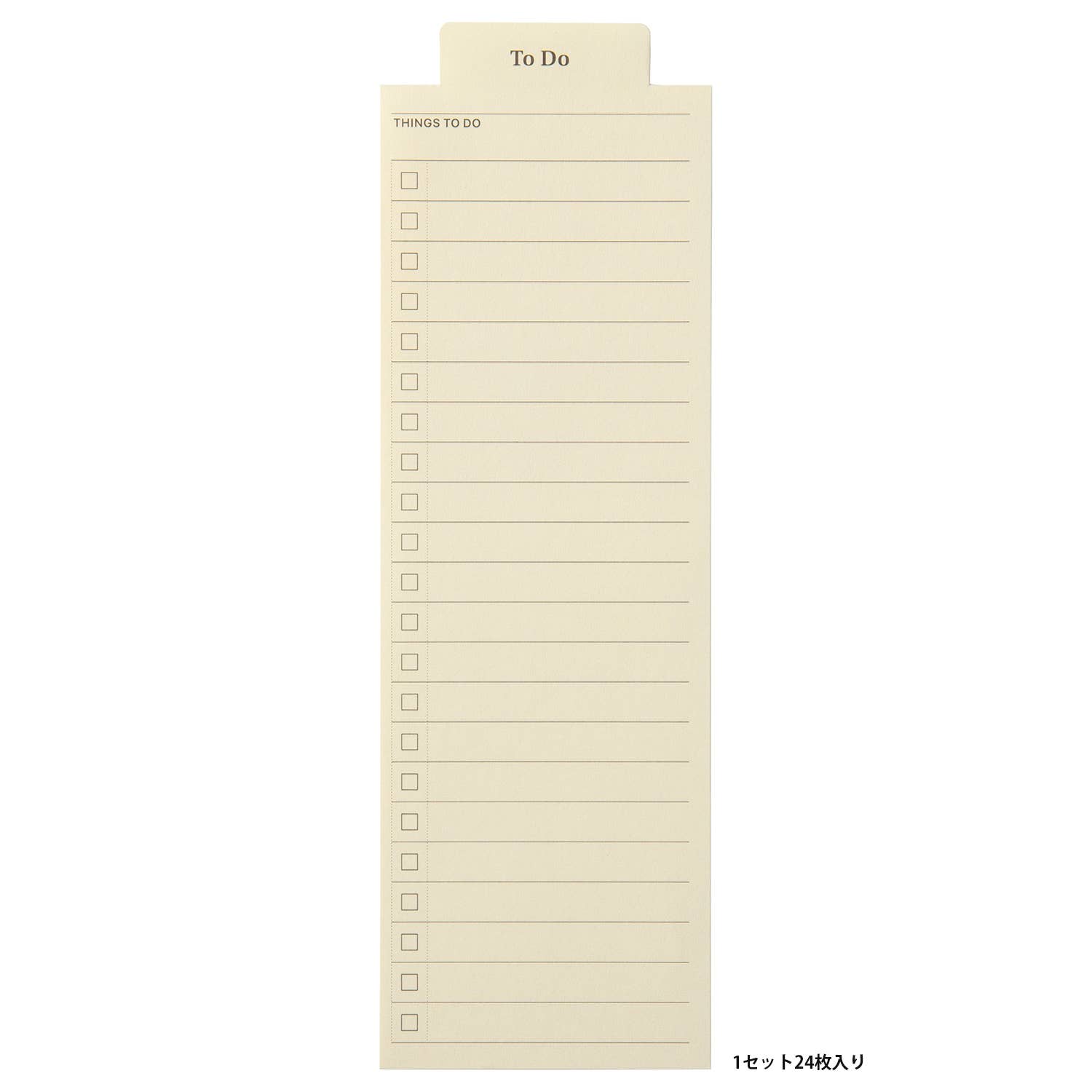 A new style of memo series that can be inserted into pages like a bookmark. This single sheet allows you to jot down 22 items such as 'things to do' or 'reminders.' It's compact and convenient, as it can easily be moved to the next document and used again without hassle.