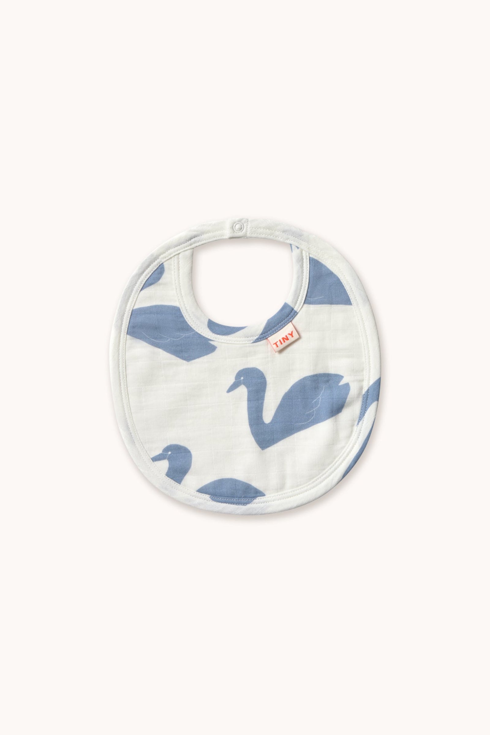 This bib is crafted from a soft organic cotton blend, gentle on delicate skin. Featuring this original Big Swans allover print, it combines charm with functionality. With towel lining on the reverse and a snap button closure, it ensures easy dressing and a secure, comfortable fit—perfect for everyday use.