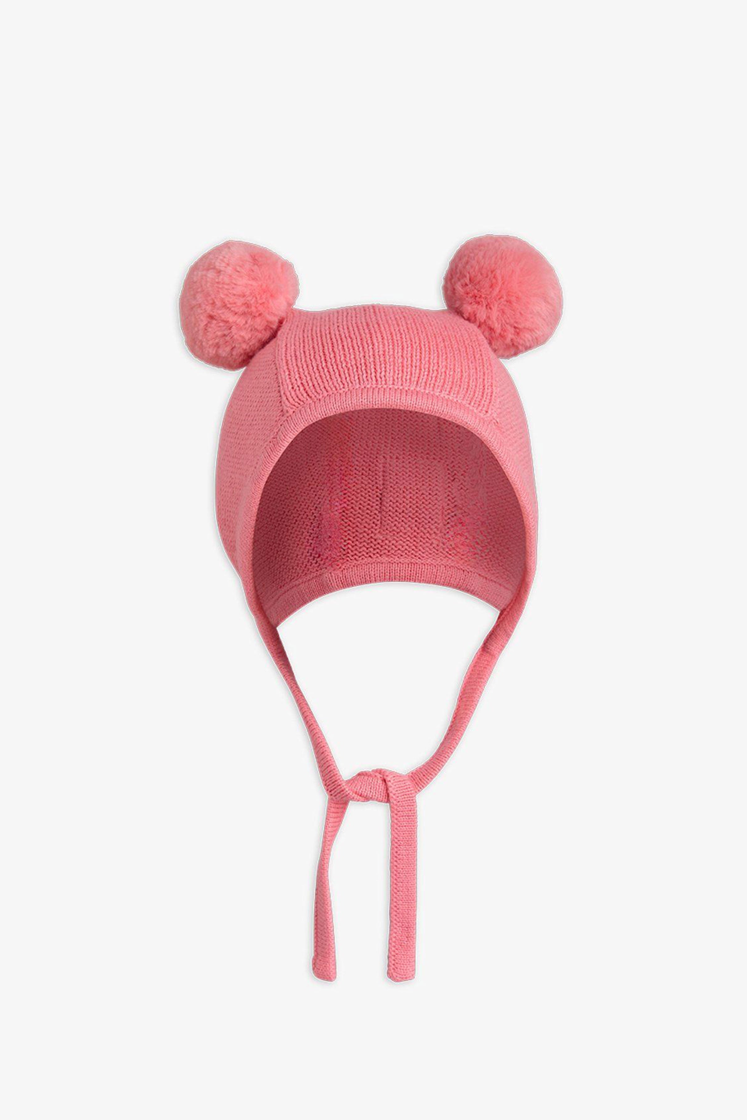 Fine-knit baby hat made from 100% GOTS certified organic cotton. Designed with two soft pom poms on top and practical tie strings to keep the hat securely in place. The rounded fit ensures comfort for little heads, and a Mini Rodini panda label is placed at the back.