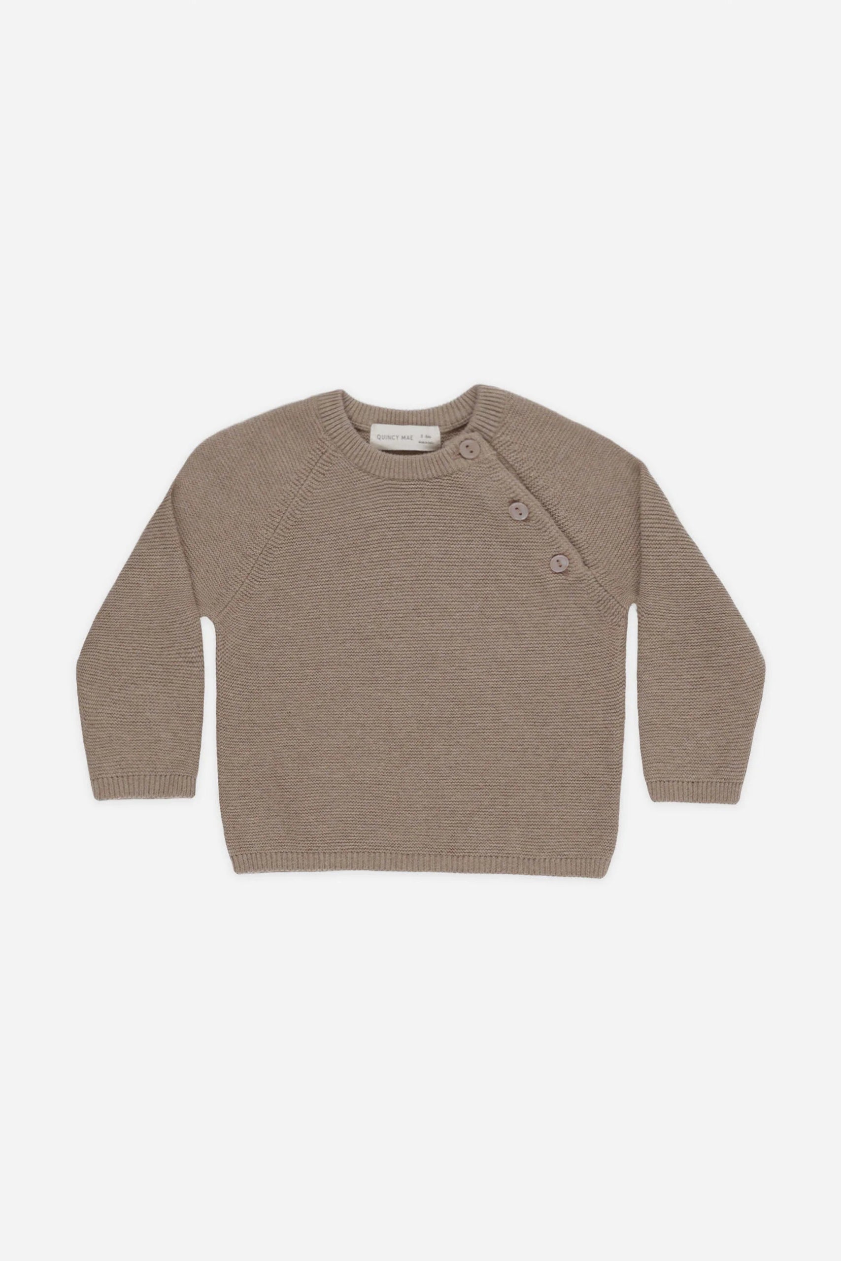 The Bailey Knit Sweater features ribbing at the neck, wrists, and waist, with faux shell buttons along its raglan seam for added ease and style. Pair with the Knit Pant to complete your little one's look.