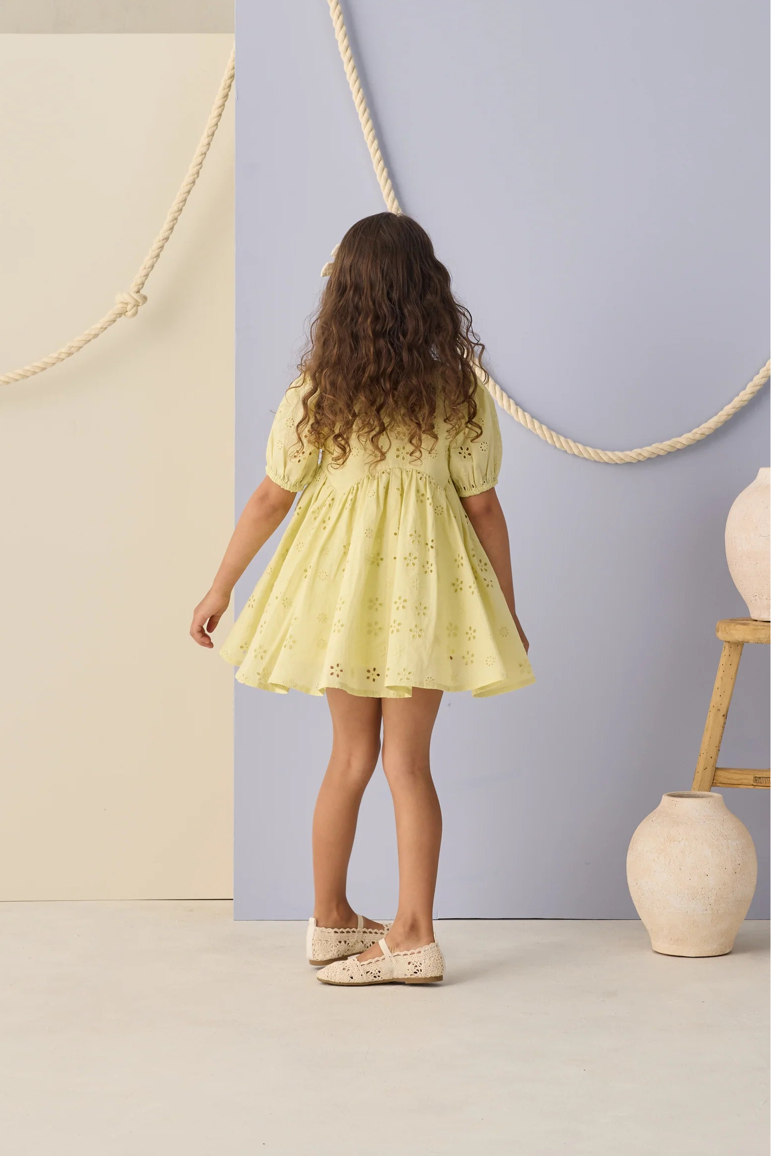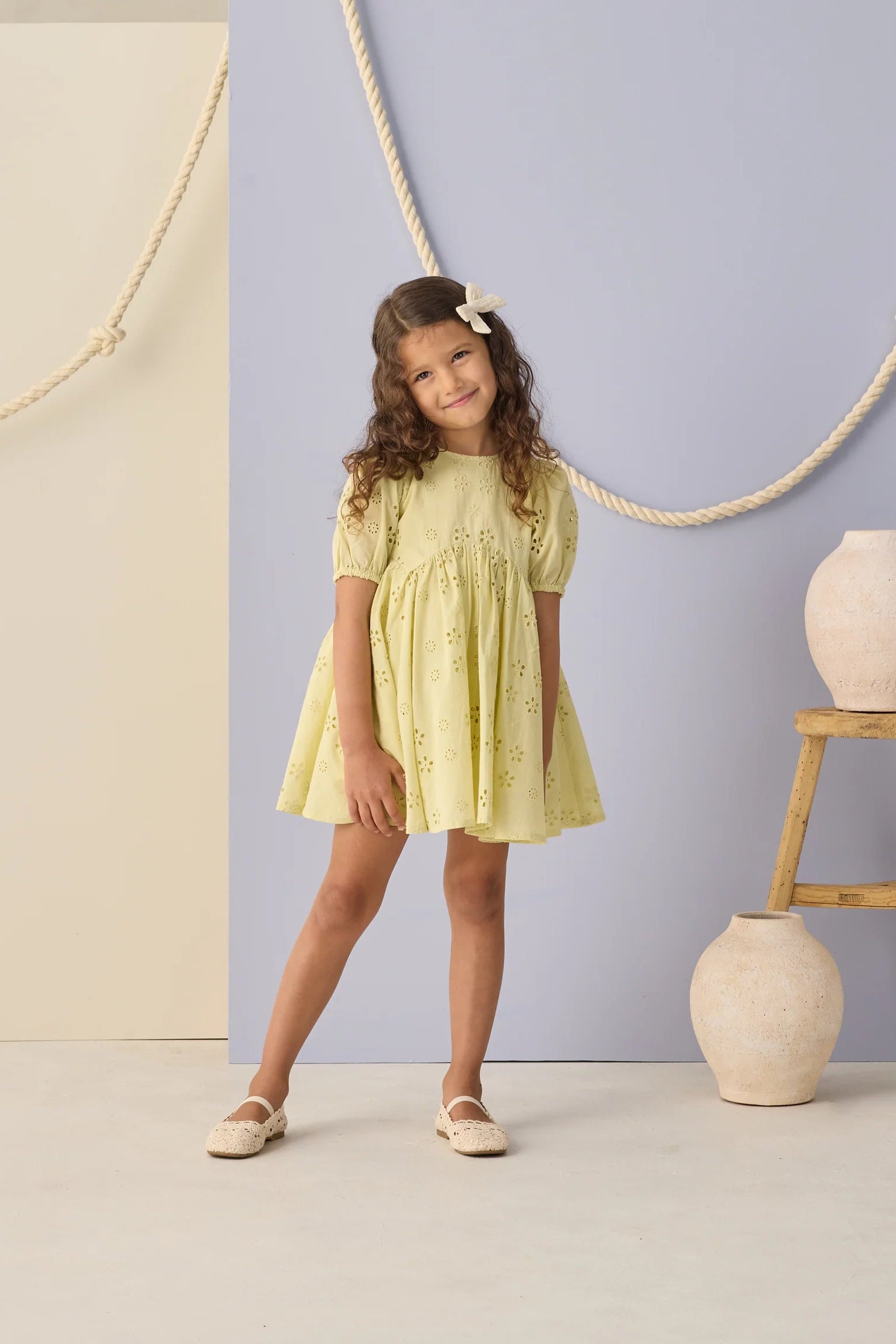 Twirl into spring in this adorable eyelet Rose Dress! This charming style features gathered puff sleeves and a scalloped waist seam for the sweetest silhouette.