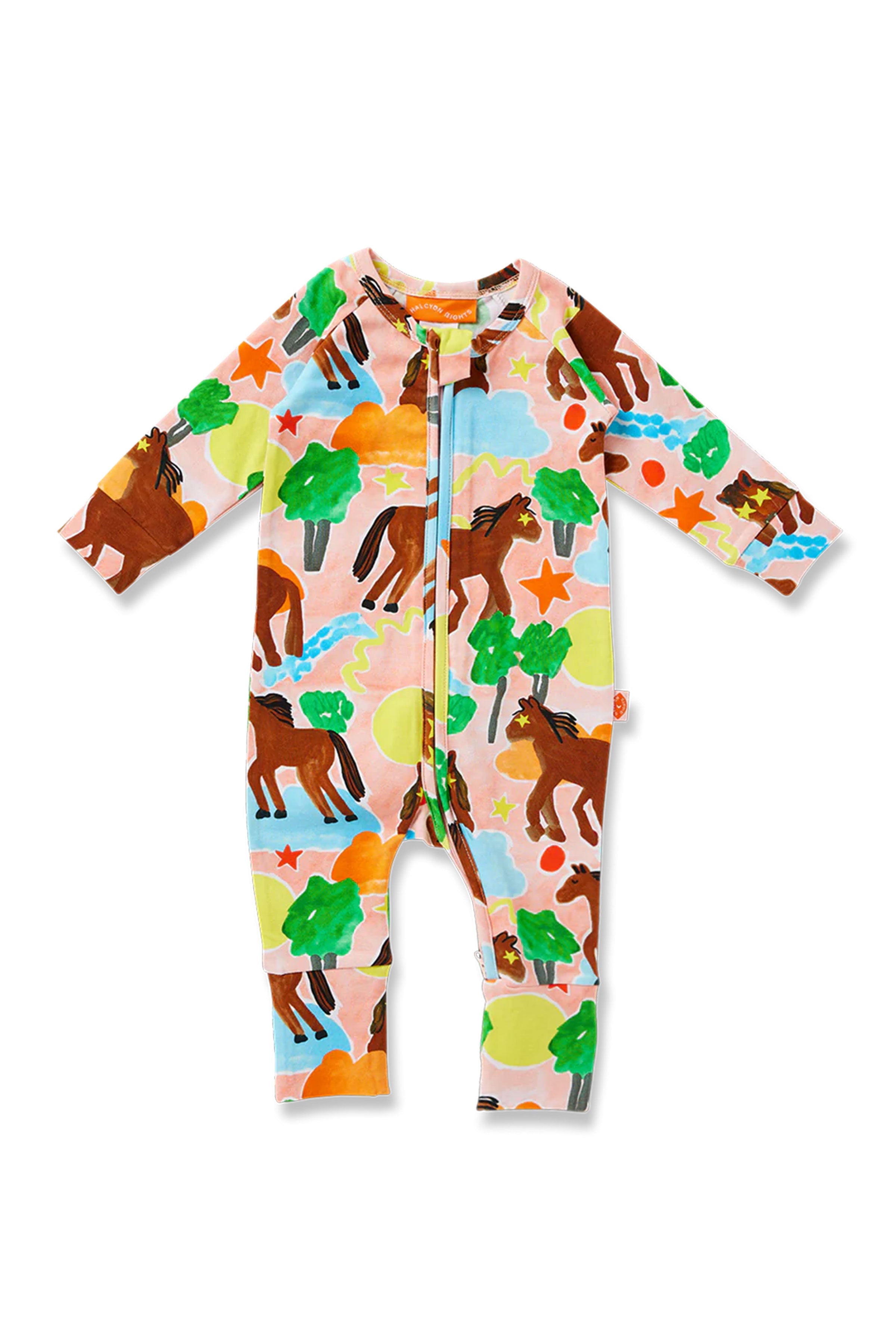 Suit yourself! Cuddle up baby in this long sleeve Zip suit for babies. Features relaxed fit, fold over foot cuffs to help with temperature regulation and a two-way zip for easy nappy changes.