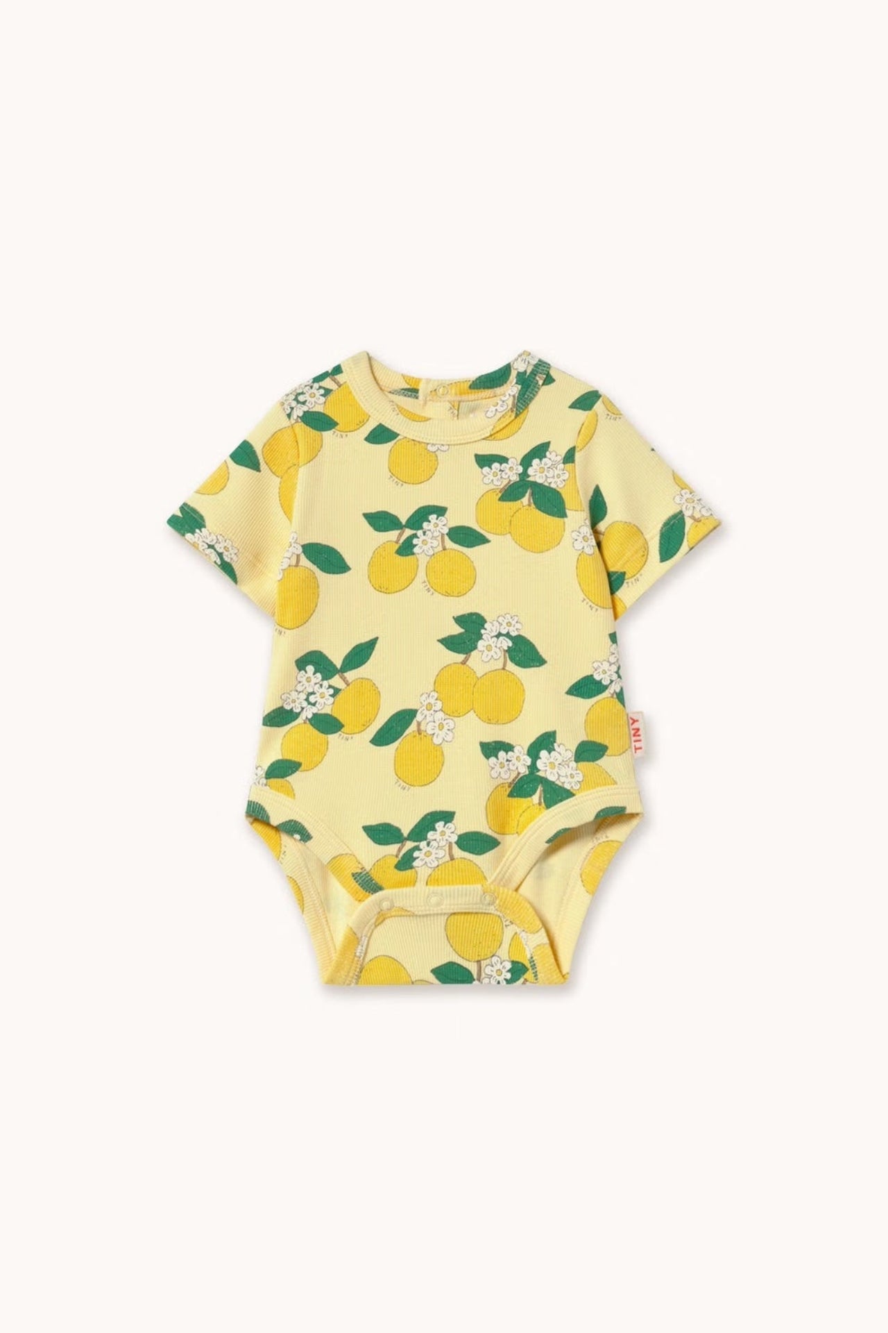 This Oranges printed rib body is crafted from a soft cotton blend fabric, breathable feel. It features a comfy, relaxed silhouette with short sleeves and a snap opening on the bottom.