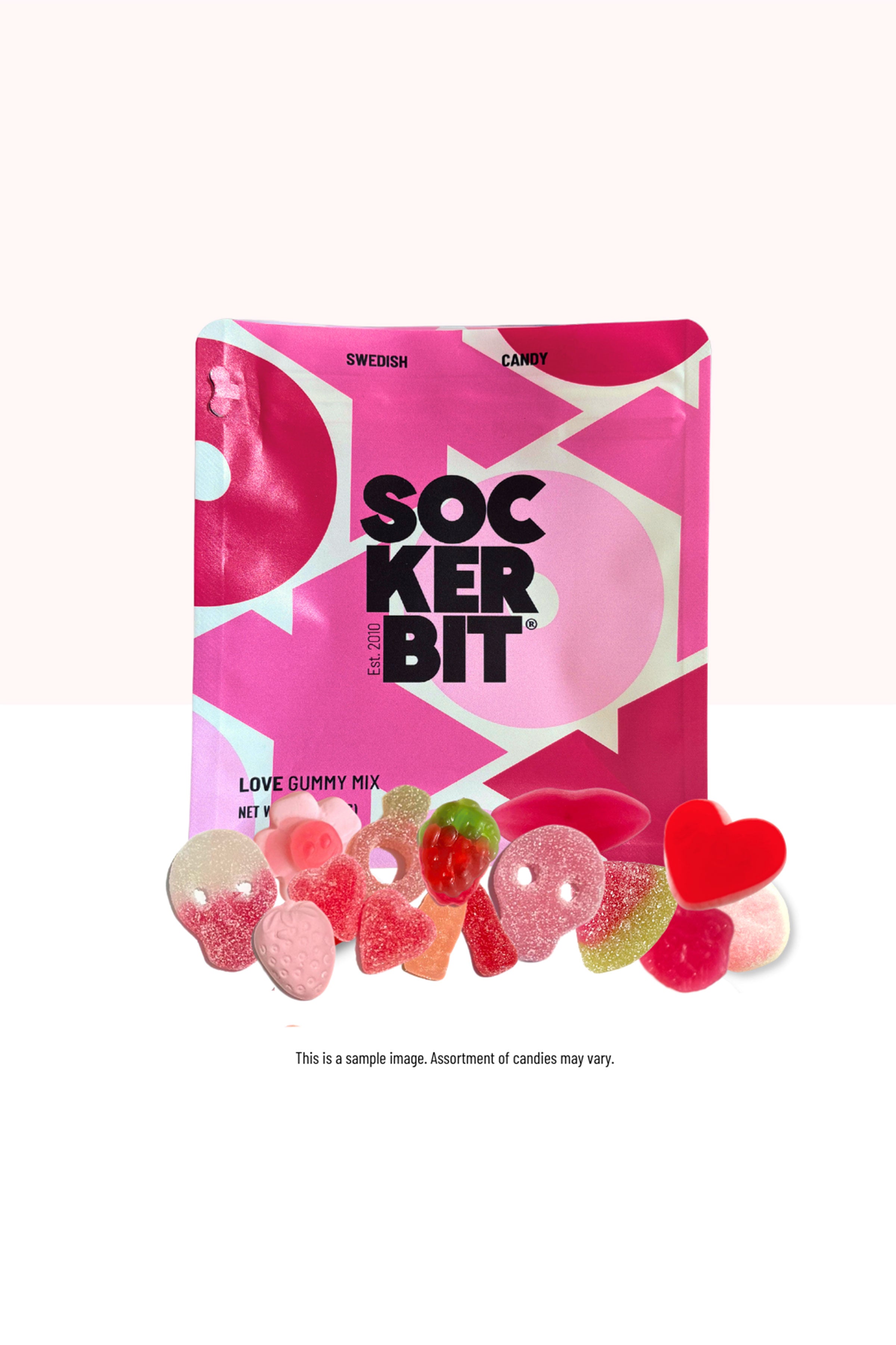 Spread the love with Sockerbit's Valentine's Love Gummy Mix Swedish Candy Bag! This resealable pouch bag is filled with a variety of sweet and sour gummies, perfectly themed for the holiday of love.