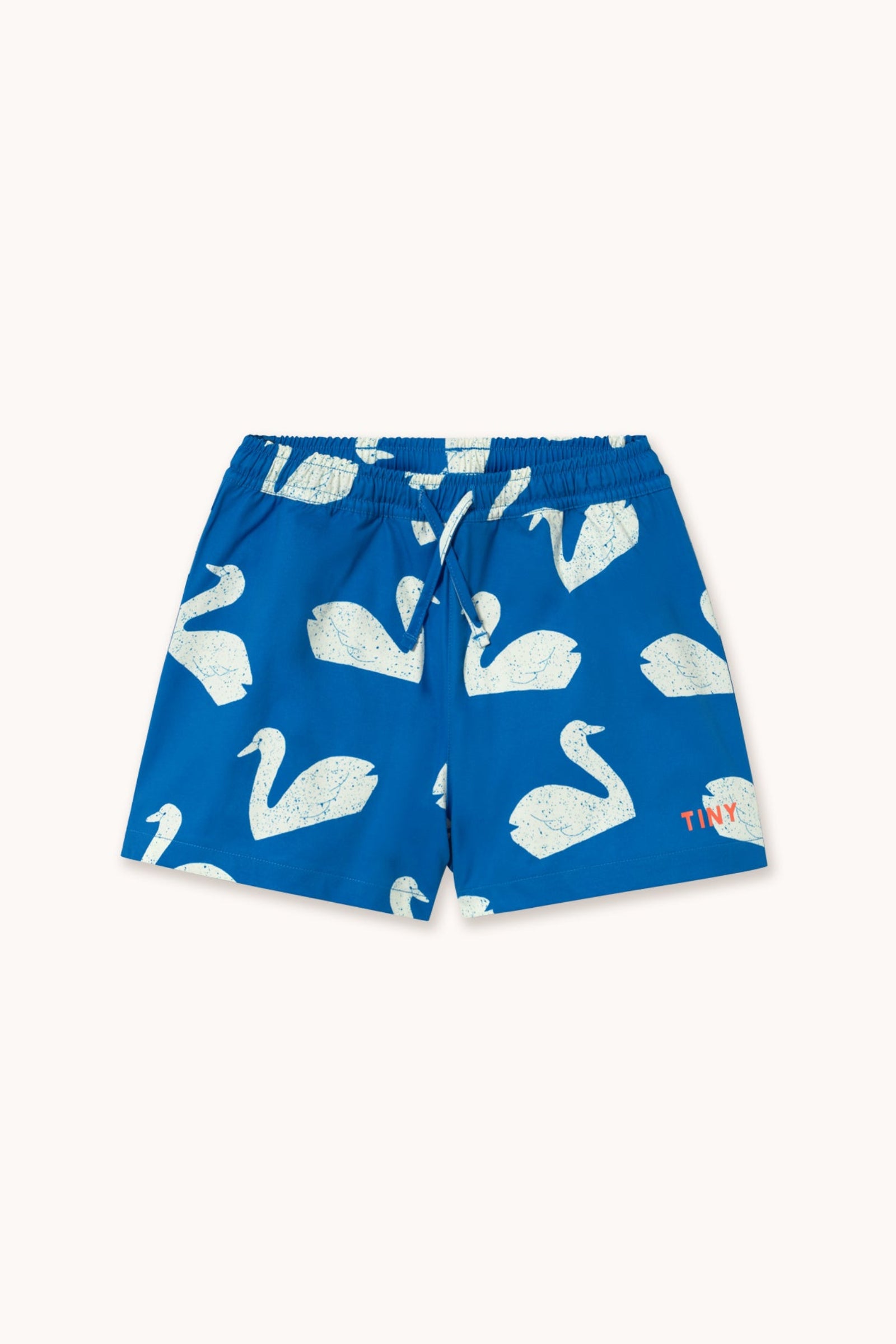 Dive into fun with these short trunks featuring the Big Swans print on a blue base. Made from a durable, quick-drying fabric, they come with an adjustable waistband and drawstring for the perfect fit. Comfortable, practical, and stylish, they’re ideal for beach or pool days.