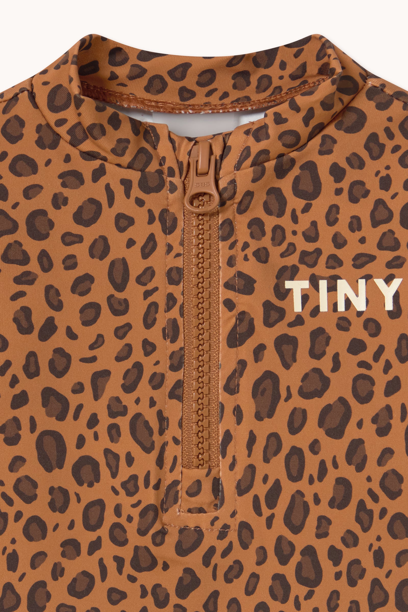This baby long-sleeve swim shirt with a mini Animal Print combines protection, comfort, and style. Made from a stretchy, quick-drying fabric, it allows full freedom of movement in the water. The front zipper makes dressing and changing easy, making it a practical and cute piece for sunny days and water fun.