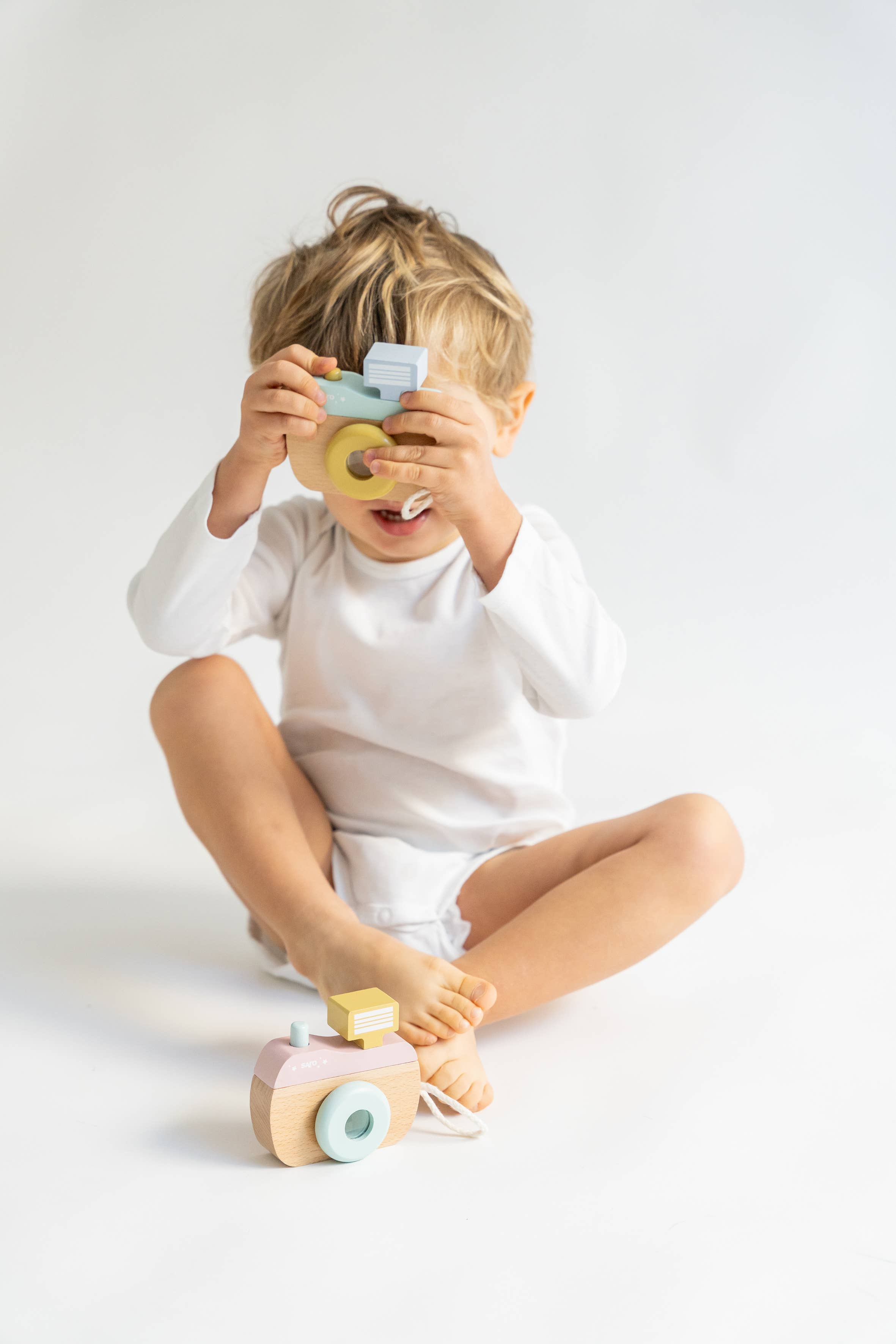 Smile! Your little one will become a real photographer with this fun wooden camera. When looking through its rotating lens will discover a kaleidoscope with which to see the world in the most fun way. Thanks to its design perfect for little hands, he will develop imagination and creativity while practicing imitation games. It includes a small strap to hold the camera and not lose it while, clicking, take the coolest pictures. Go on, say cheese... click!