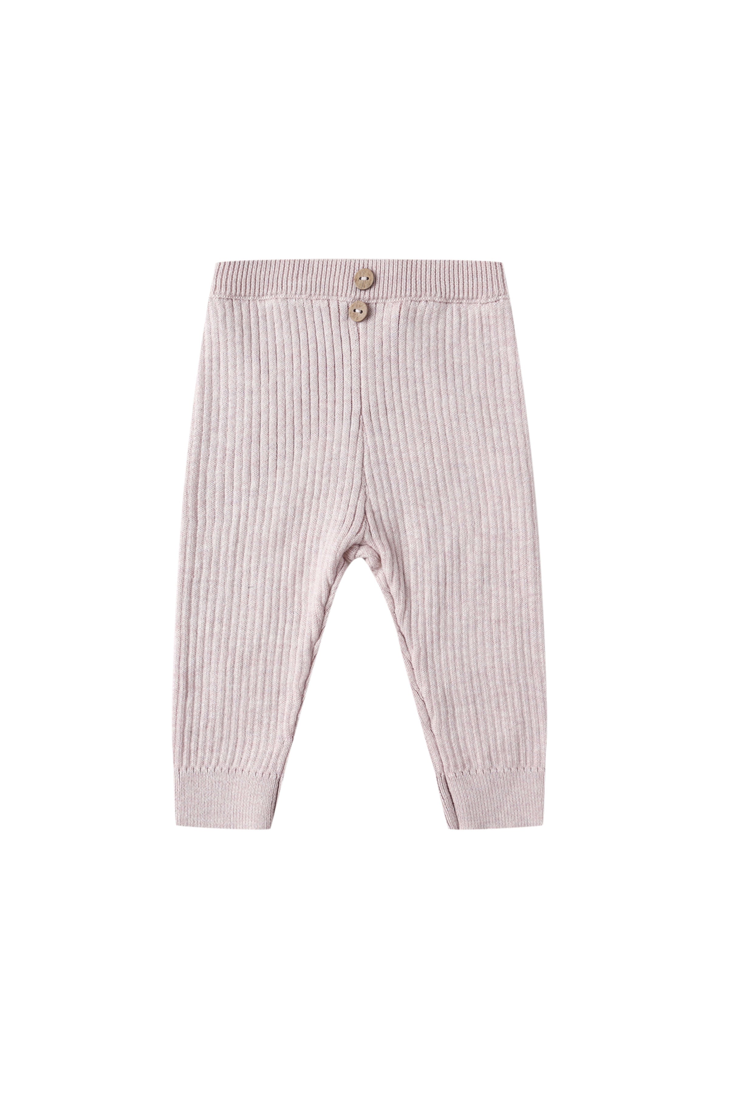 Cozy ribbed knit leggings featuring an elastic waistband and coconut button detail.