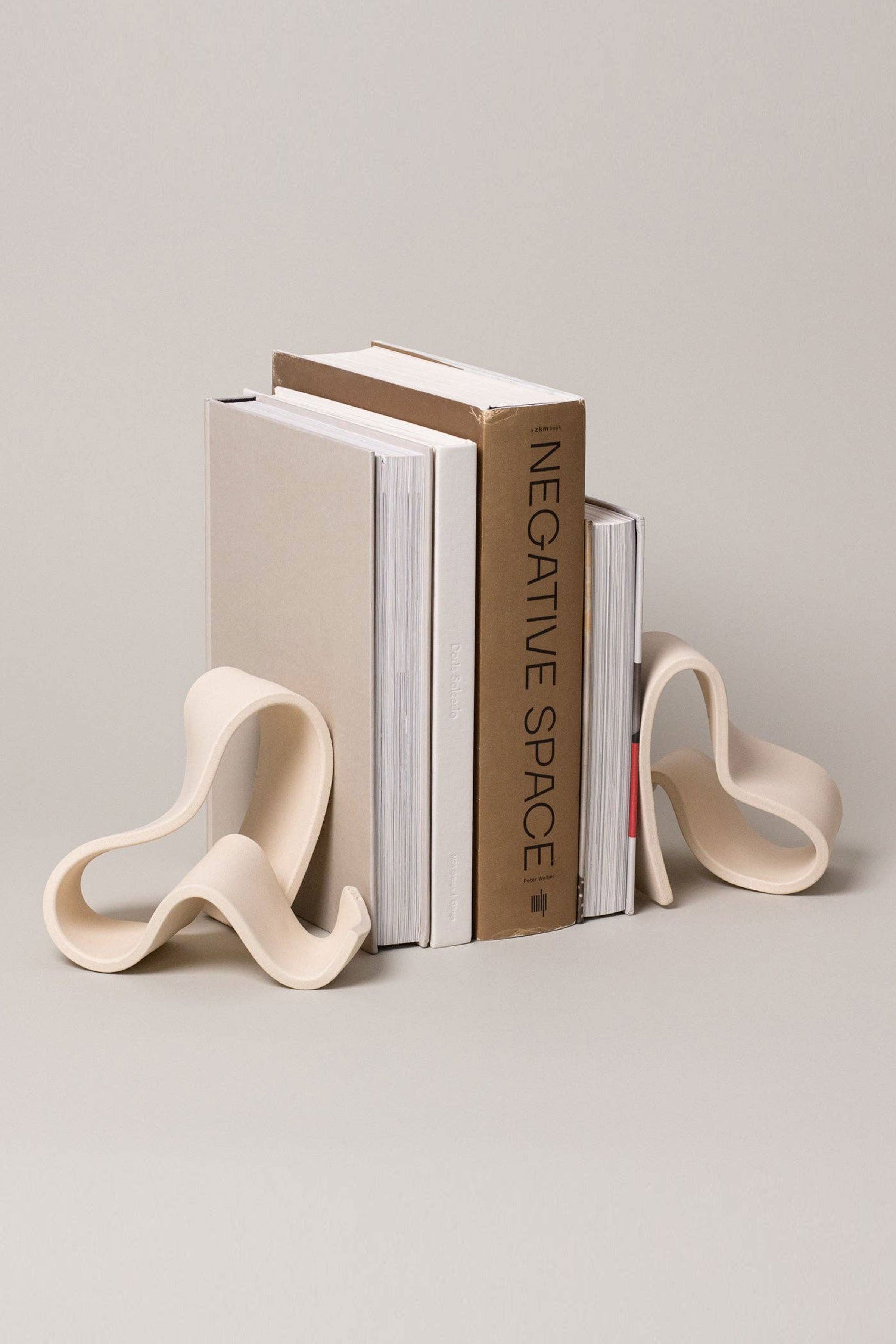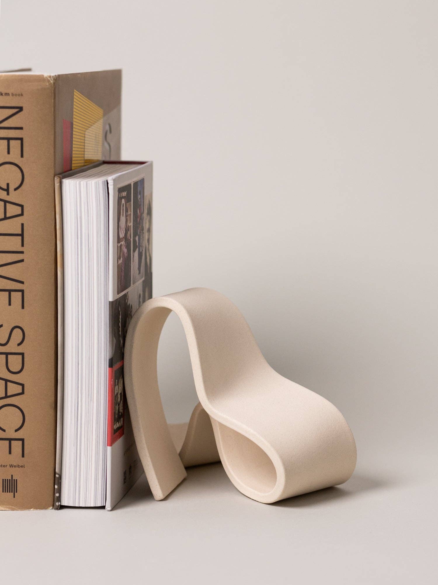 The Fettu's design is inspired by the organic, ribbon-like forms of fettuccine. Wide enough to have a nice bite and substantial enough to maintain its form, the Fettu is equal parts playful and grounding. Rhythmic in form, its sculptural tendencies disguise its function, allowing it to serve as bookends or an art object.