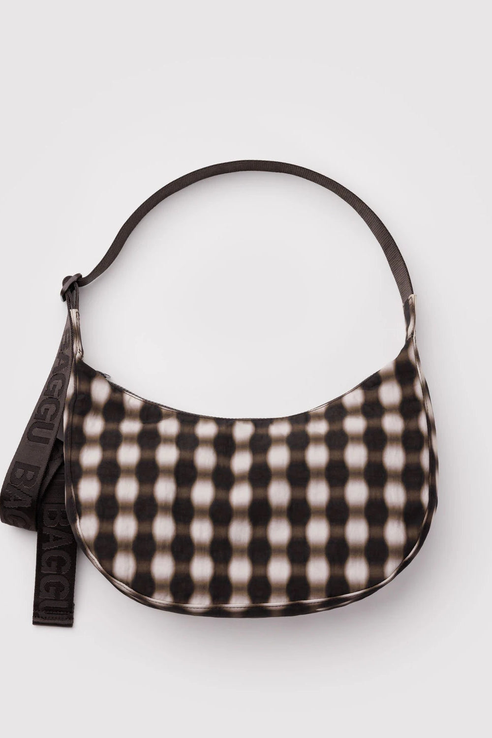 Medium Nylon Crescent Bag (Blurred Gingham Brown)