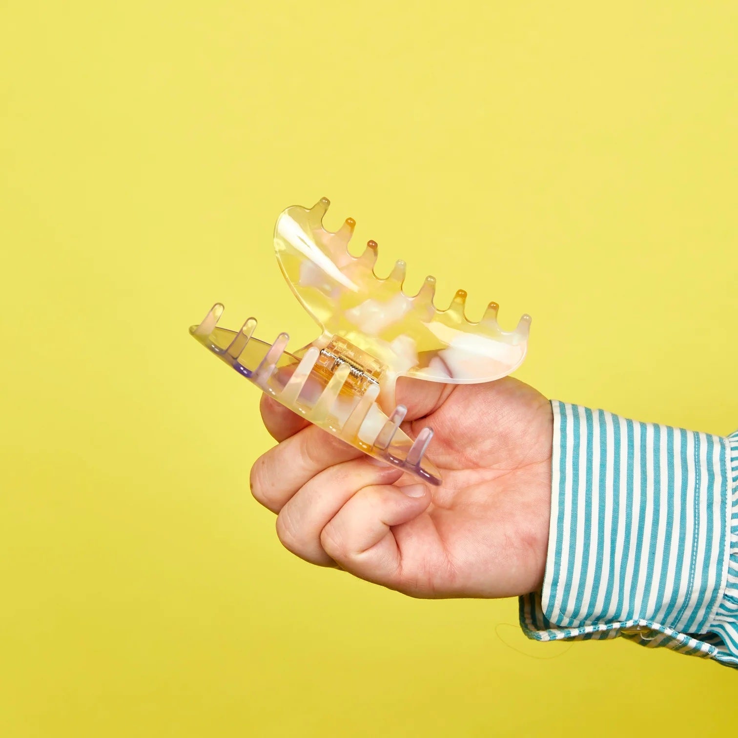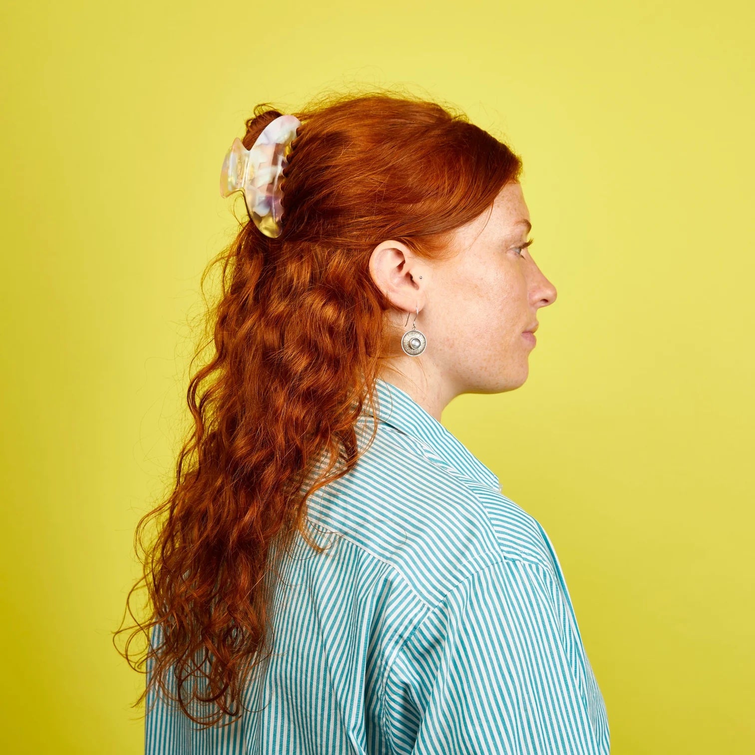 This Baby Dolly holds roughly the same amount of hair as the CHUNKS Checker claws. For our fine-haired ladies, you can probably hold up a full bun. For really thick or curly-haired ladies, prob a perfect half-hold.