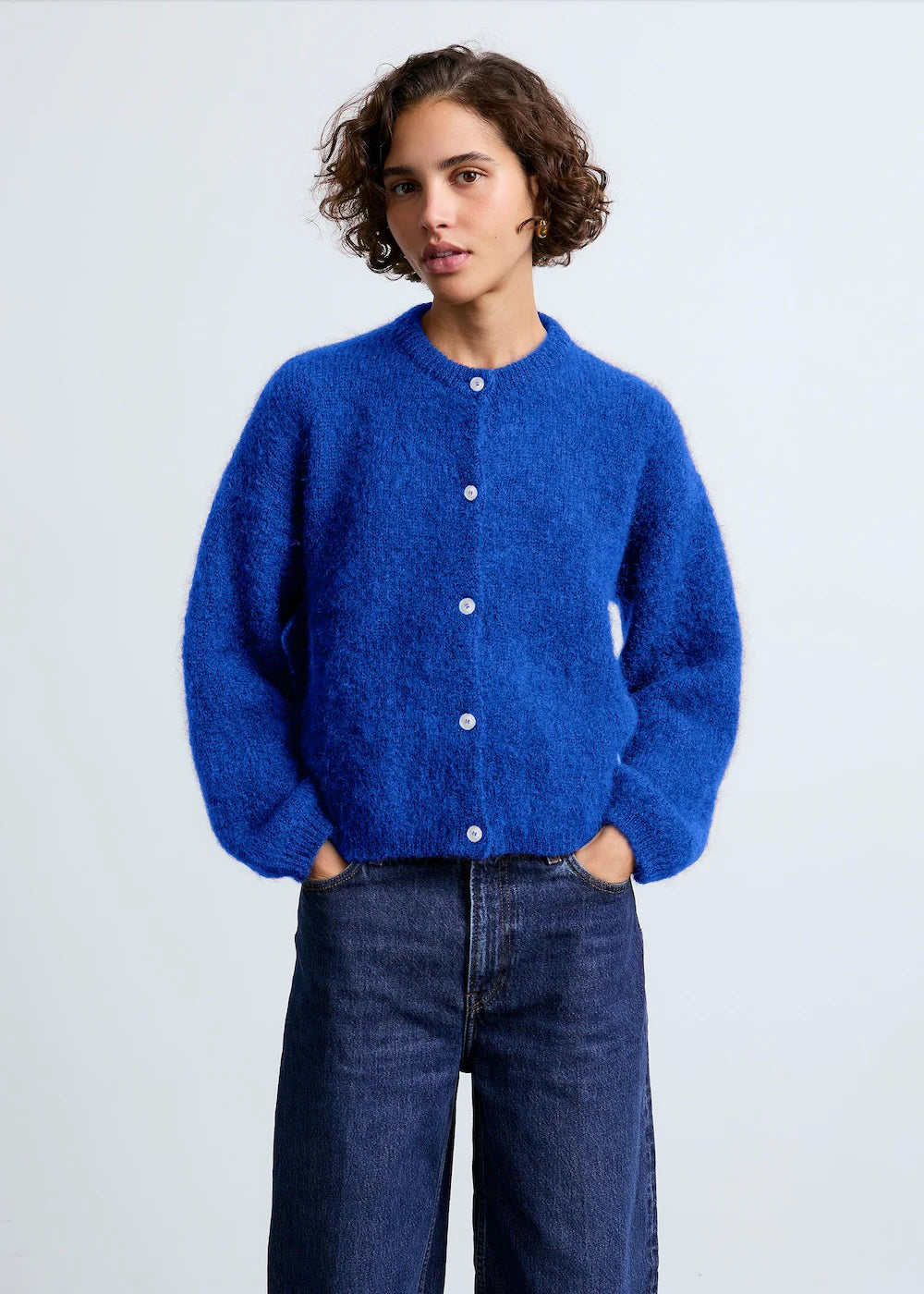 The Olivia cardigan is a fluffy, soft and lightweight round-neck cardigan.