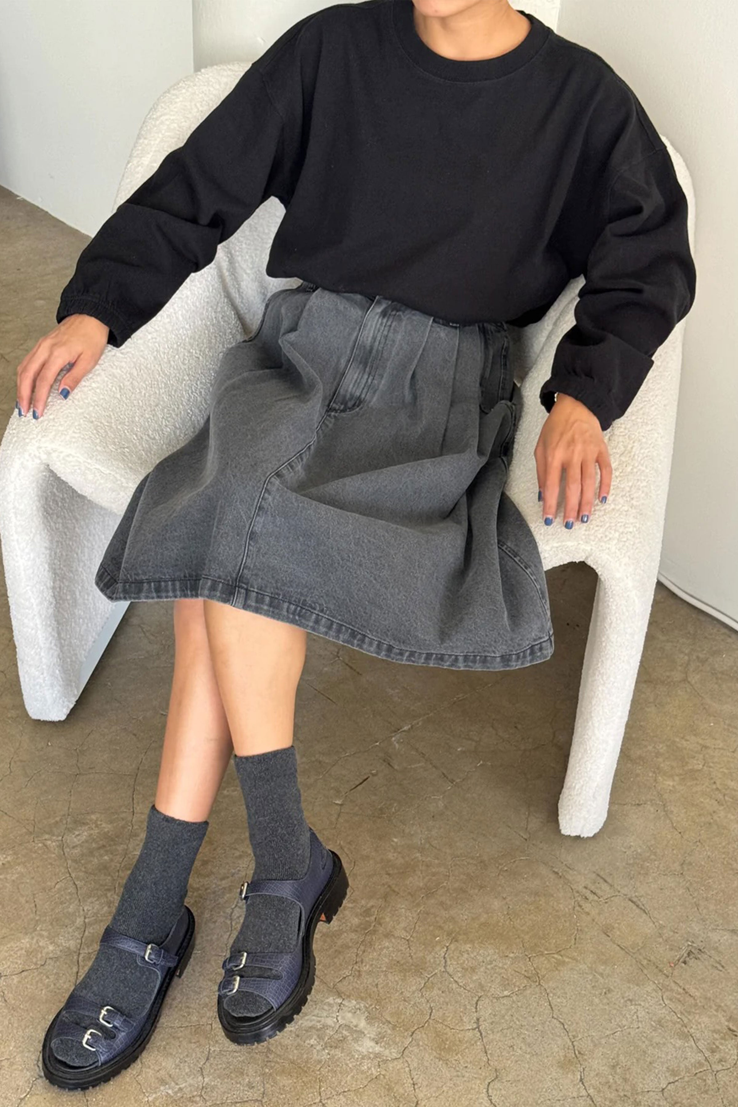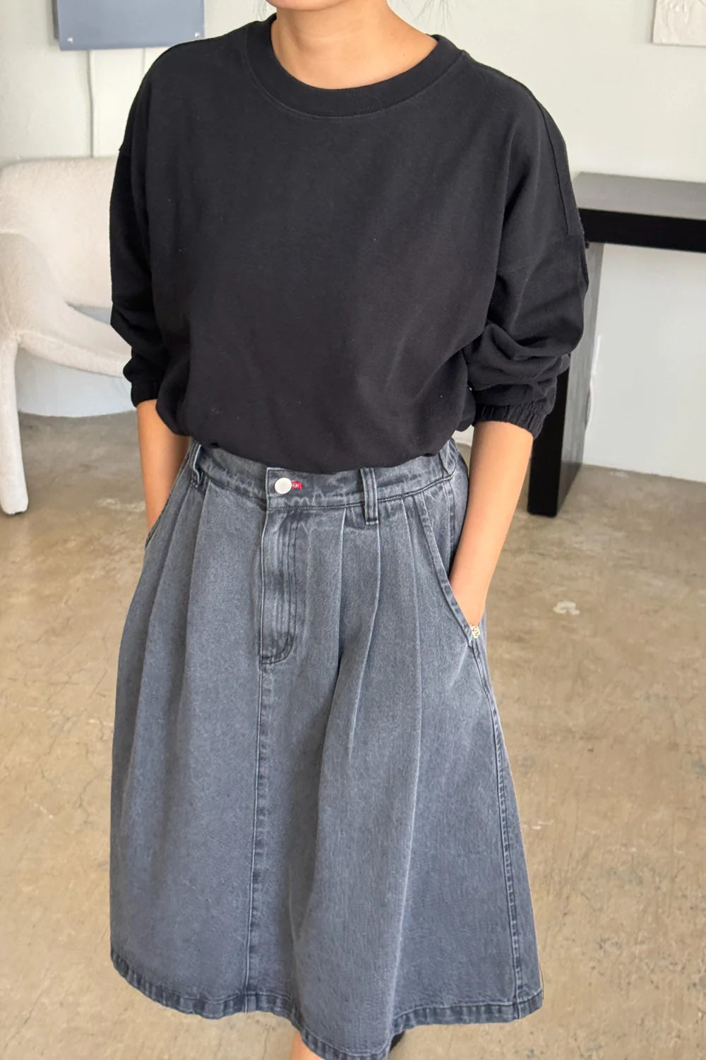 A relaxed t-shirt made from a heavyweight cotton with a super raw textured - yet still soft and airy. Elastic ruched sleeve opening creates a slight balloon sleeve effect and adds a slight feminine detail. Wear the sleeve full length or scrunch it up for a more relaxed, slouchy feel. Pairs perfectly with the Flared Basketball Shorts.