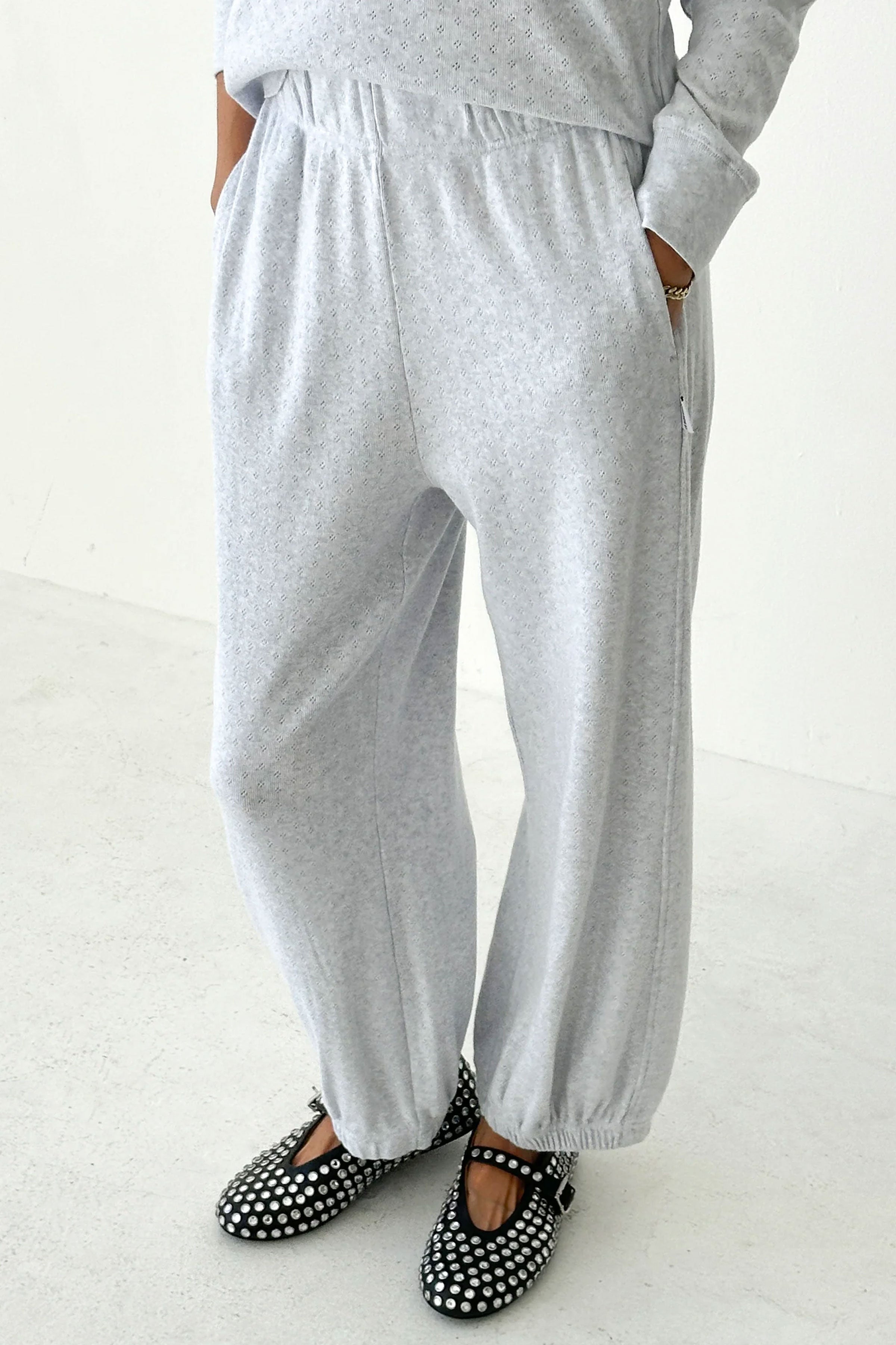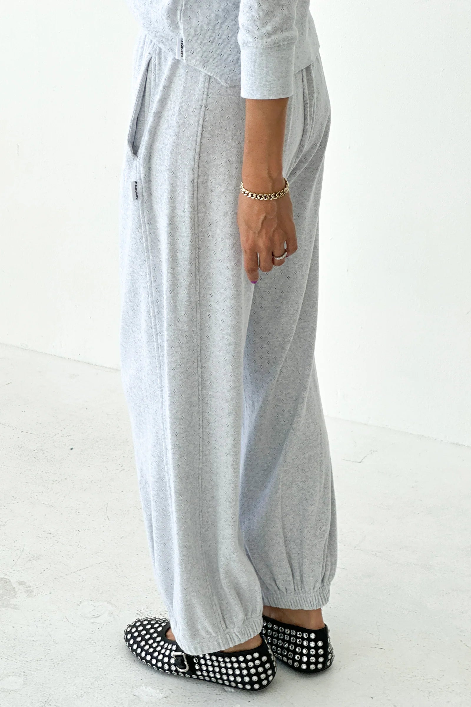 The iconic Balloon Pant silhouette just got cozier. Made from the same ultra-soft cotton pointelle jersey as the Eve Cami—dreamy to the touch with a gentle drape. Designed with an easy elastic high waist, relaxed fit, and gathered ankles that play well with any shoe, they’re finished with slimming side panels and hidden slit pockets for just the right balance of comfort and structure. Whether you’re lounging, layering, or stepping out, these pants were made to move with you.